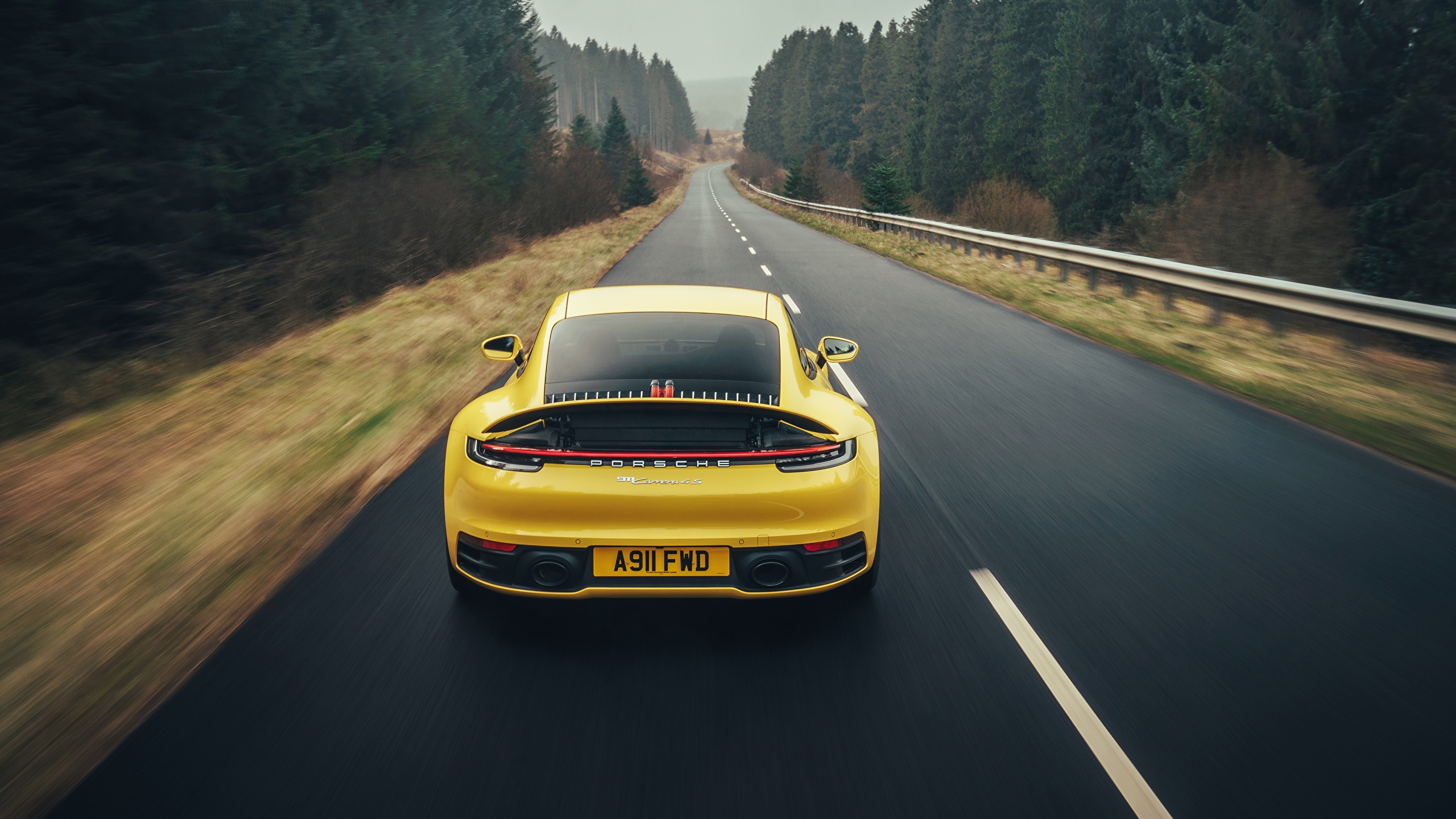 Porsche Дороги 911 Carrera 4S 2019 Желтый Сзади Движение Автомобили фото 2560x1440