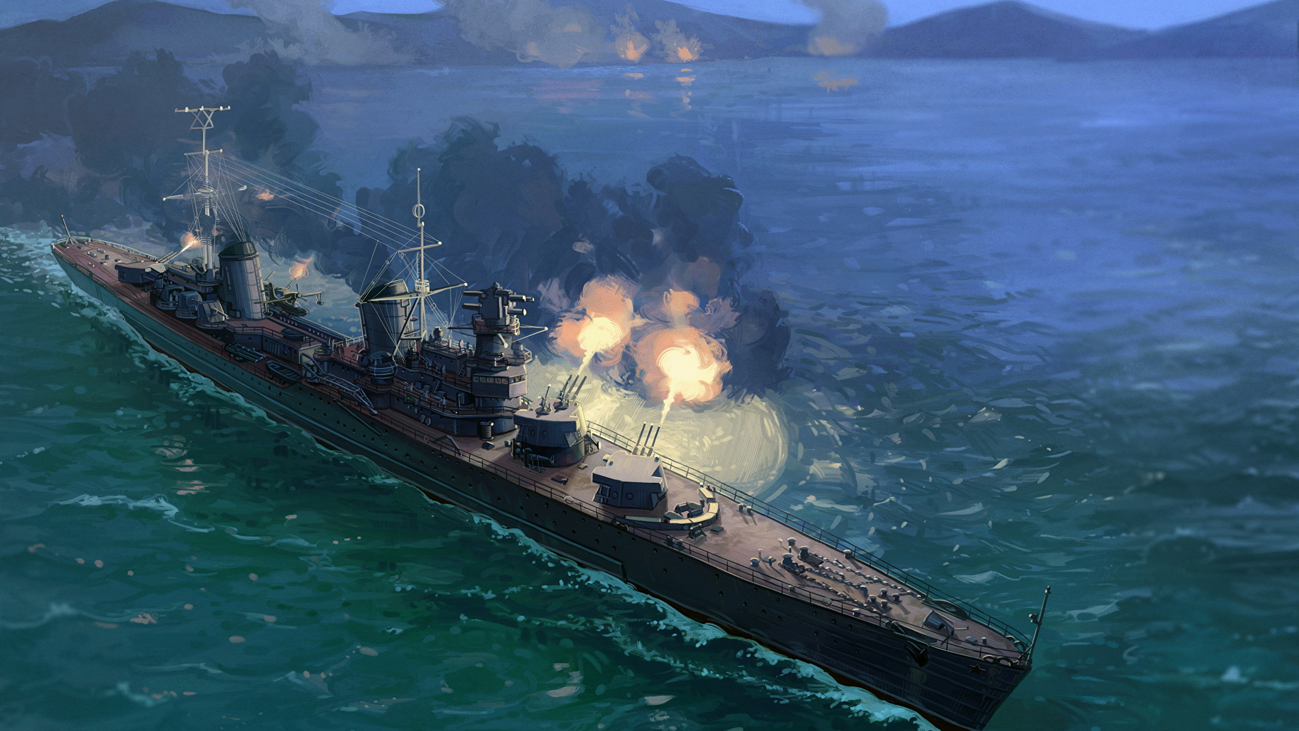 Корабли Рисованные Cruiser Molotov Выстрел Русские Армия фото 2560x1440