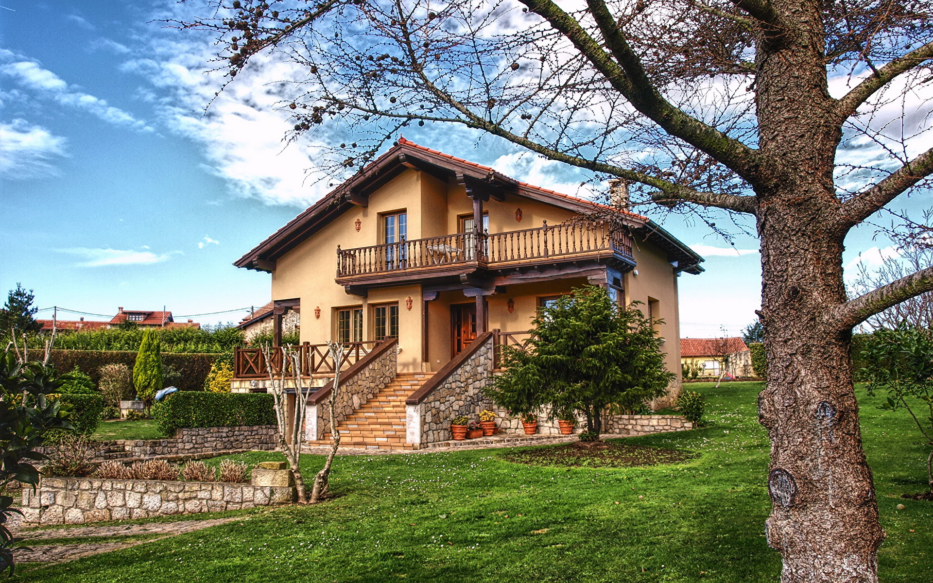 Испания Небо Кантабрия Трасьерра Облака Трава Города фото 1920x1200
