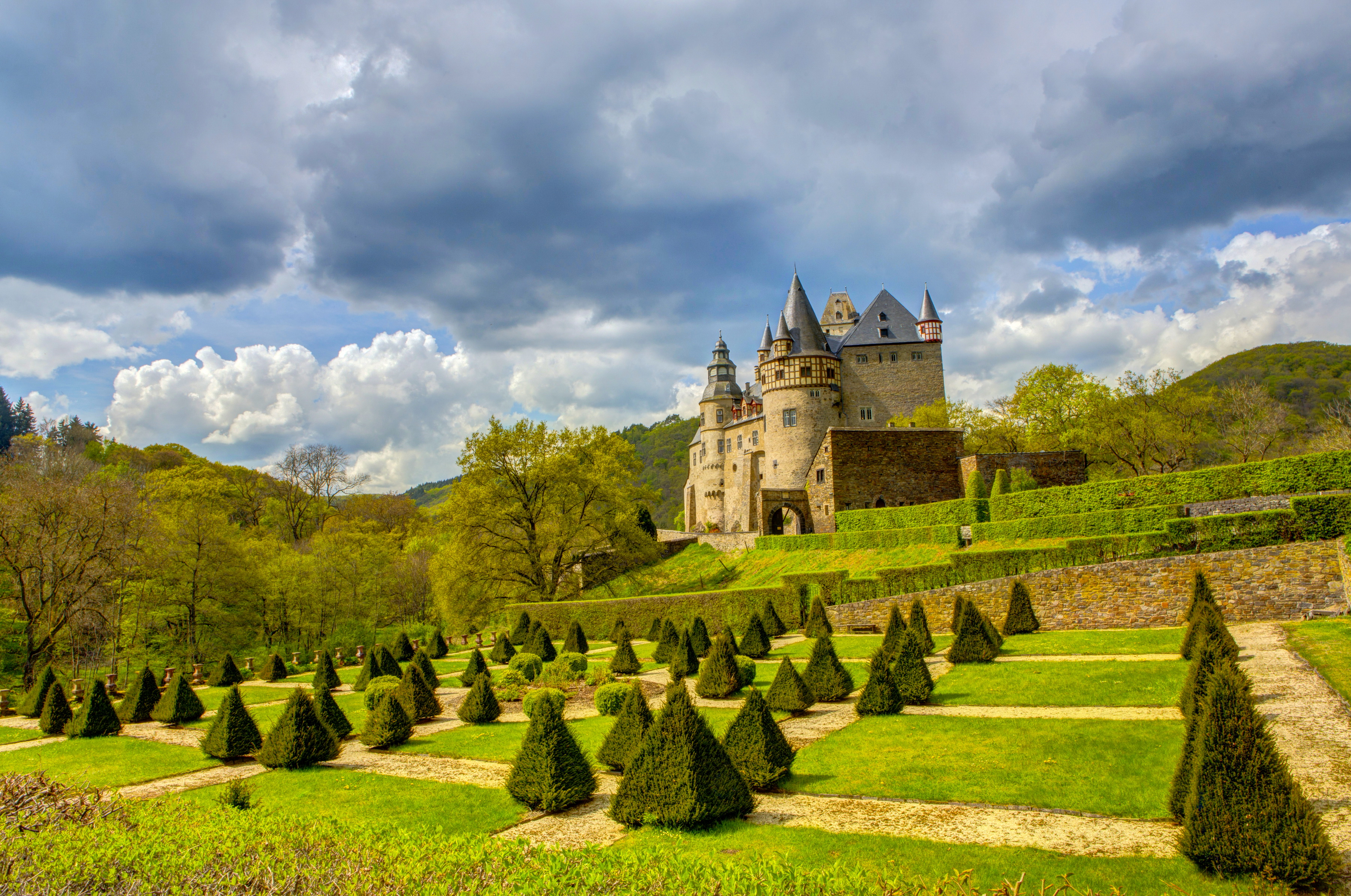 Германия Замки Парки Buerresheim Кусты Газон Города фото