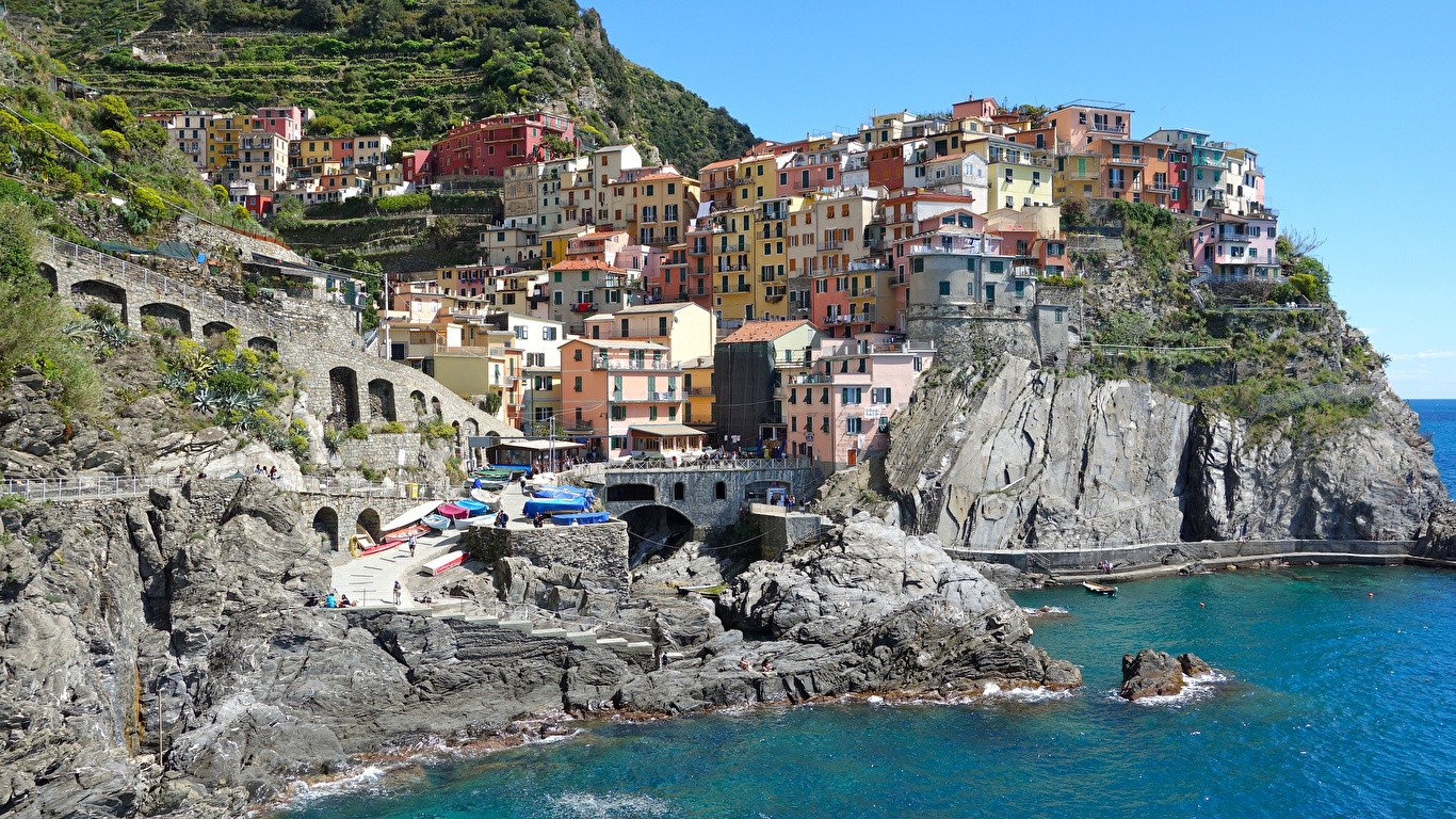 Побережье Дома Италия Лигурия Чинкве-Терре парк Manarola Скала Города фото 1366x768