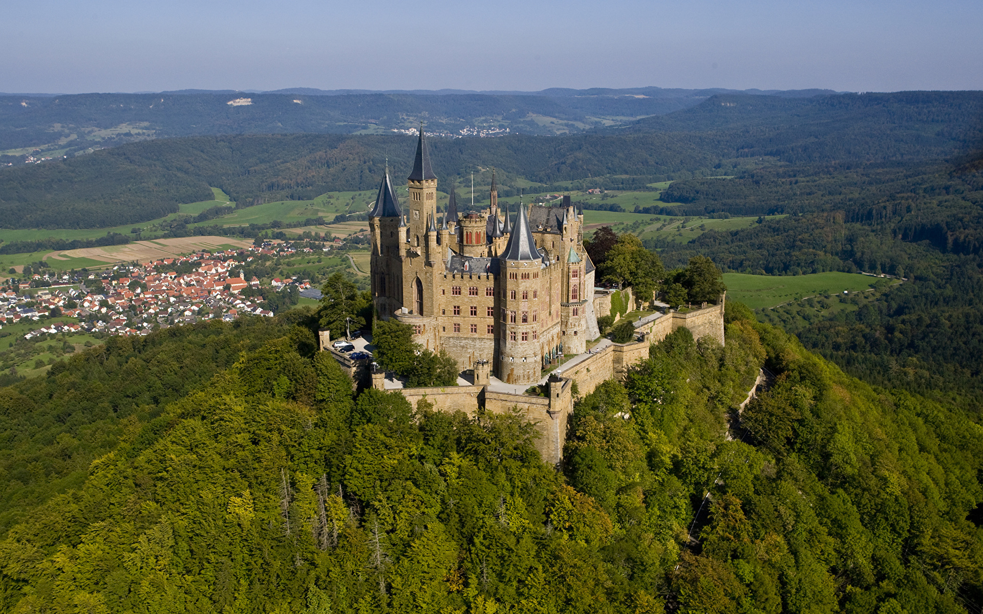 Замки Германия Крепость Hohenzollern Castle, Baden-Württemberg Холмы Города фото 1920x1200