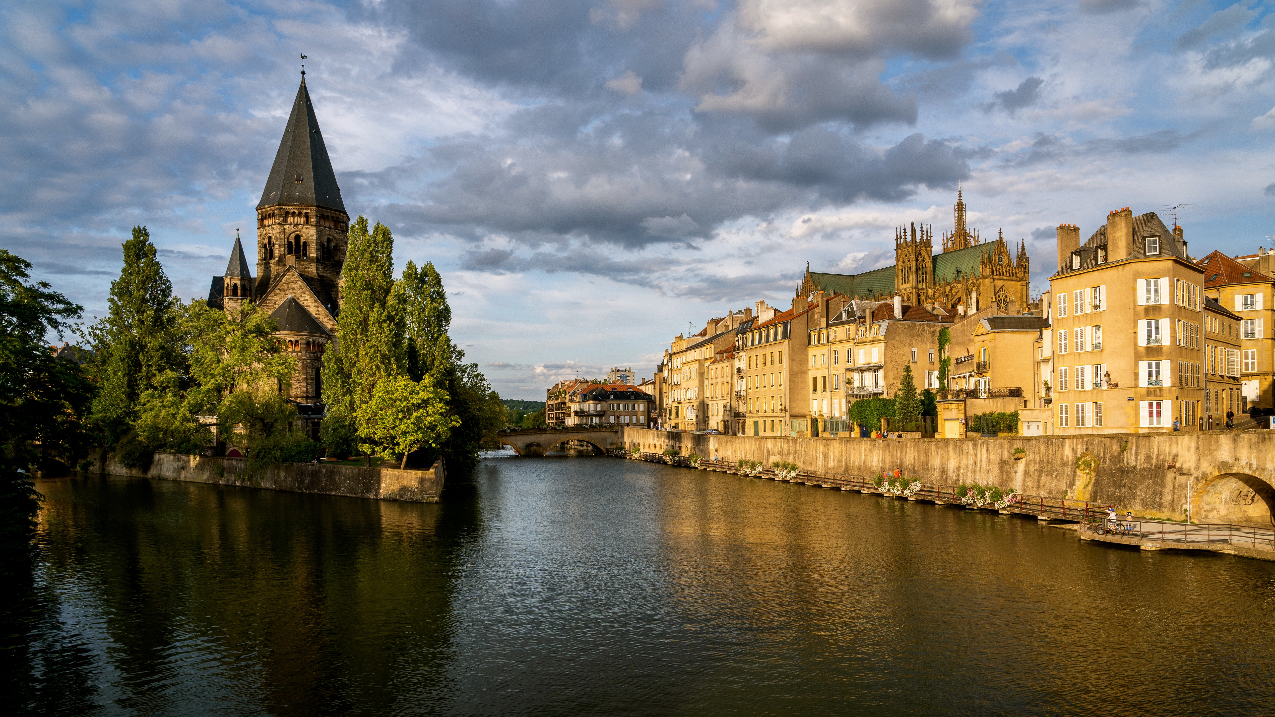 Франция Дома Реки Собор Metz Города фото 5120x2880
