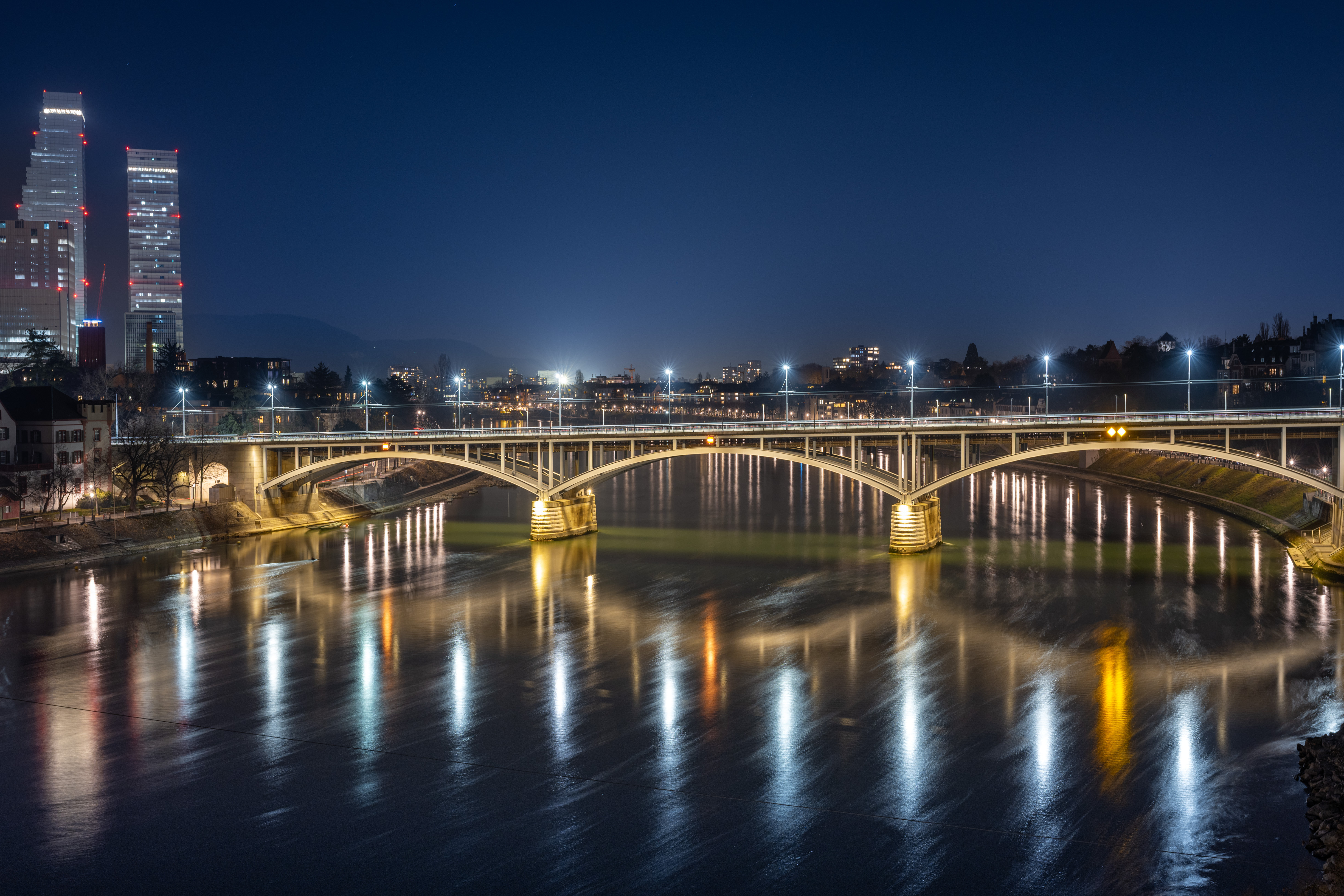 Швейцария Реки Мосты Дома Basel Ночь Города фото 4898x3265
