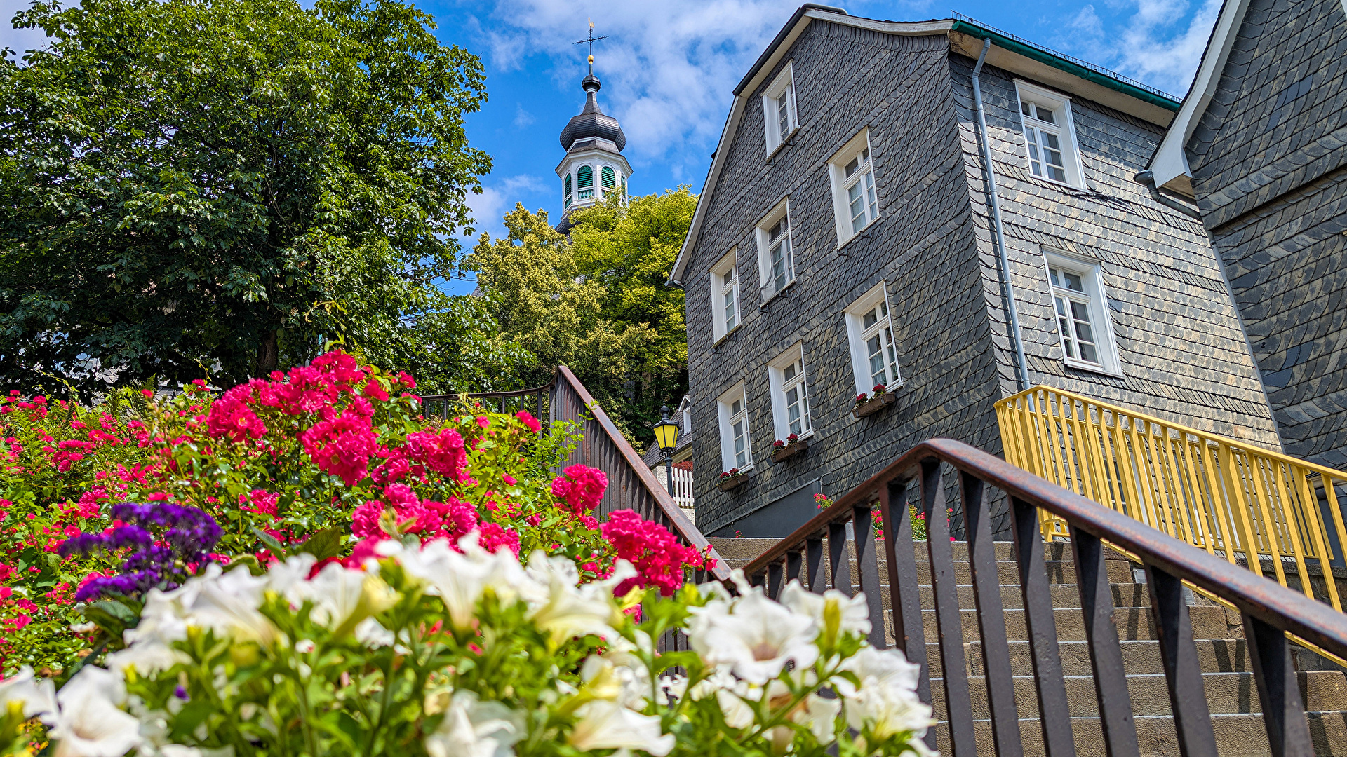 Германия Дома Церковь Gräfrath Лестница Деревья Города фото 1920x1080