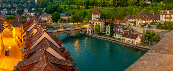 Швейцария Берн Реки Мосты Дома Крыша Сверху Города фото 600x248