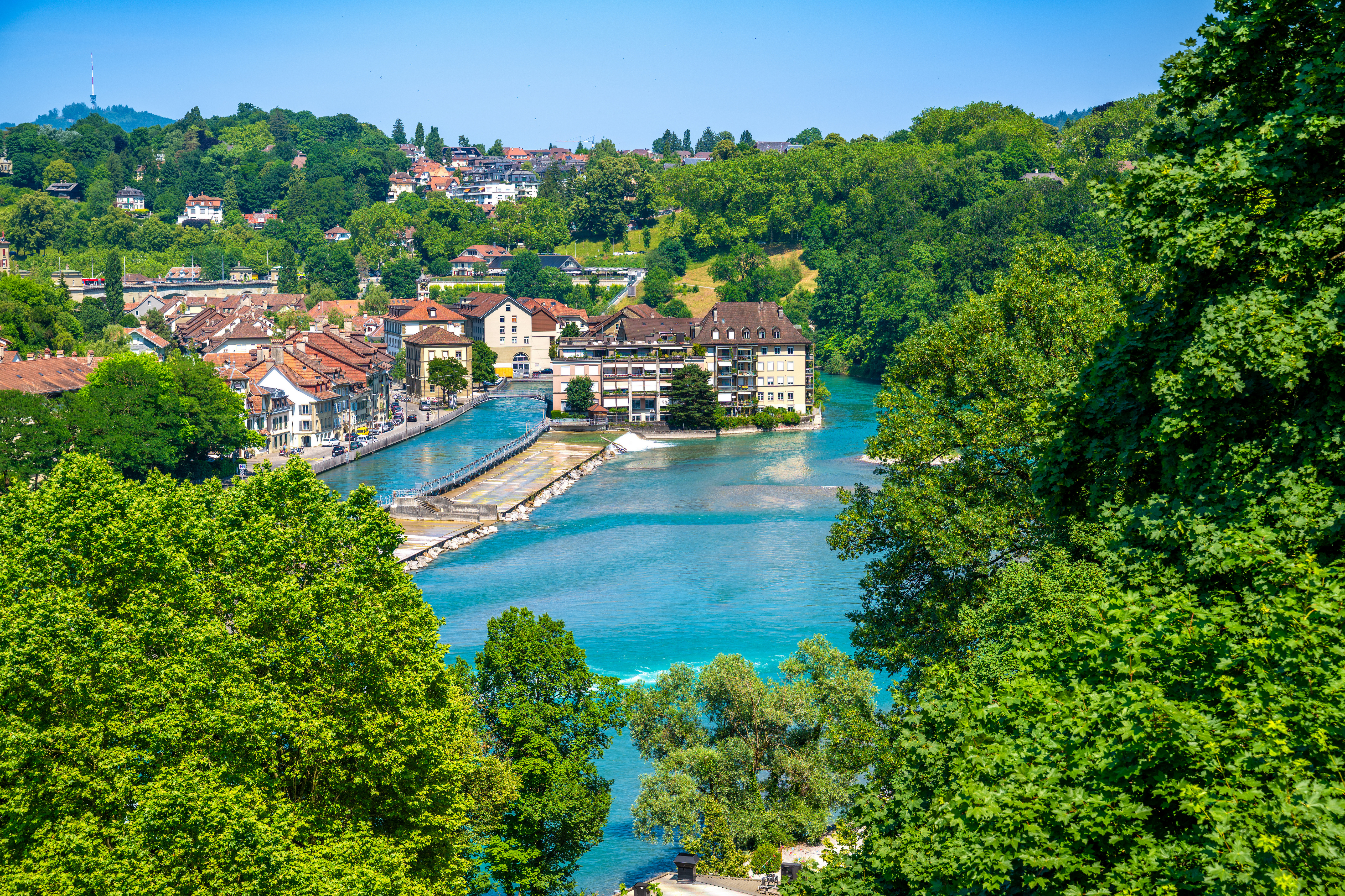 город, речка, река, Здания, дерево, деревьев, дерева обои картинки скачать на рабочий стол ПК, планшета