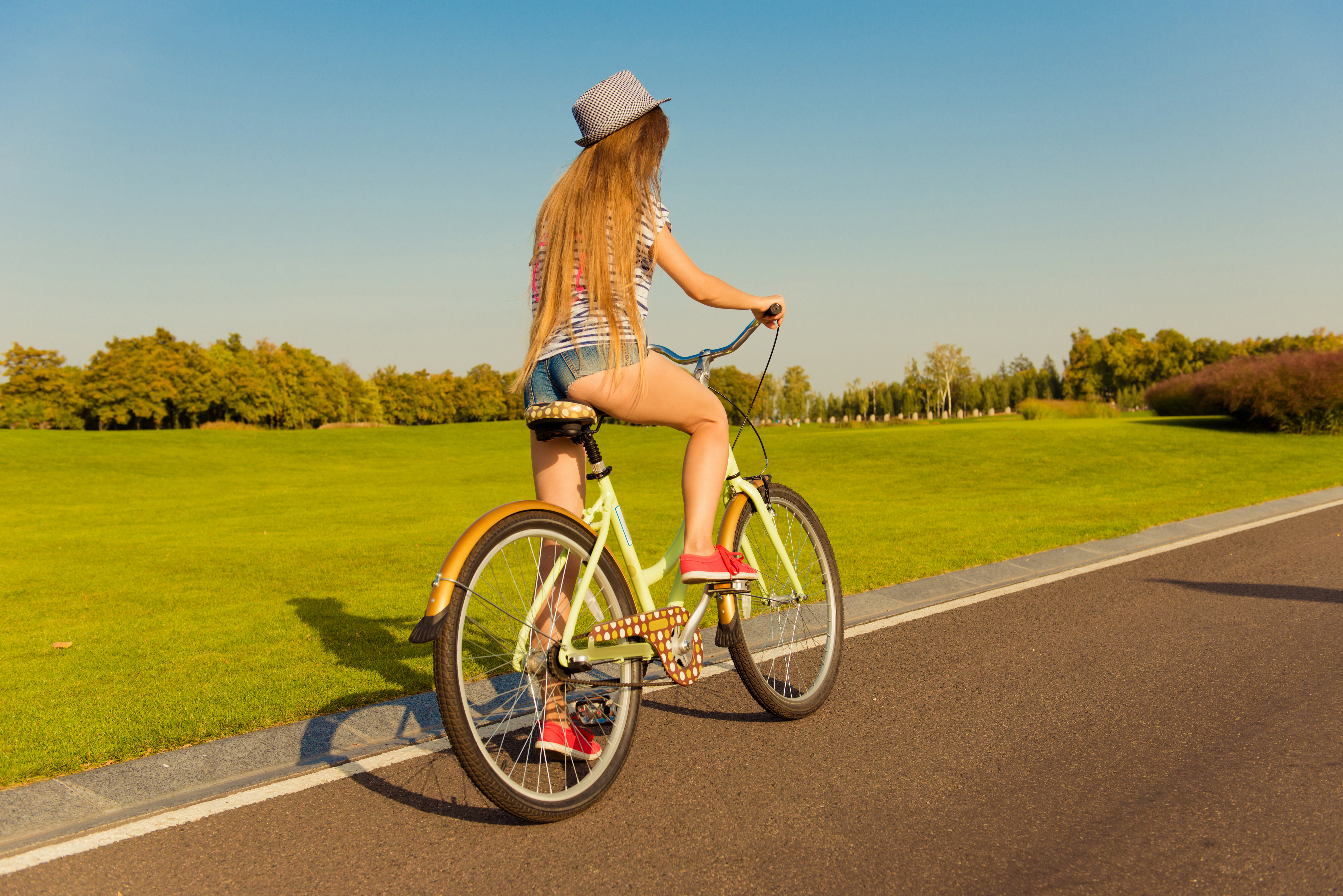 Блондинка Велосипед Шляпа Ноги Девушки фото 600x400