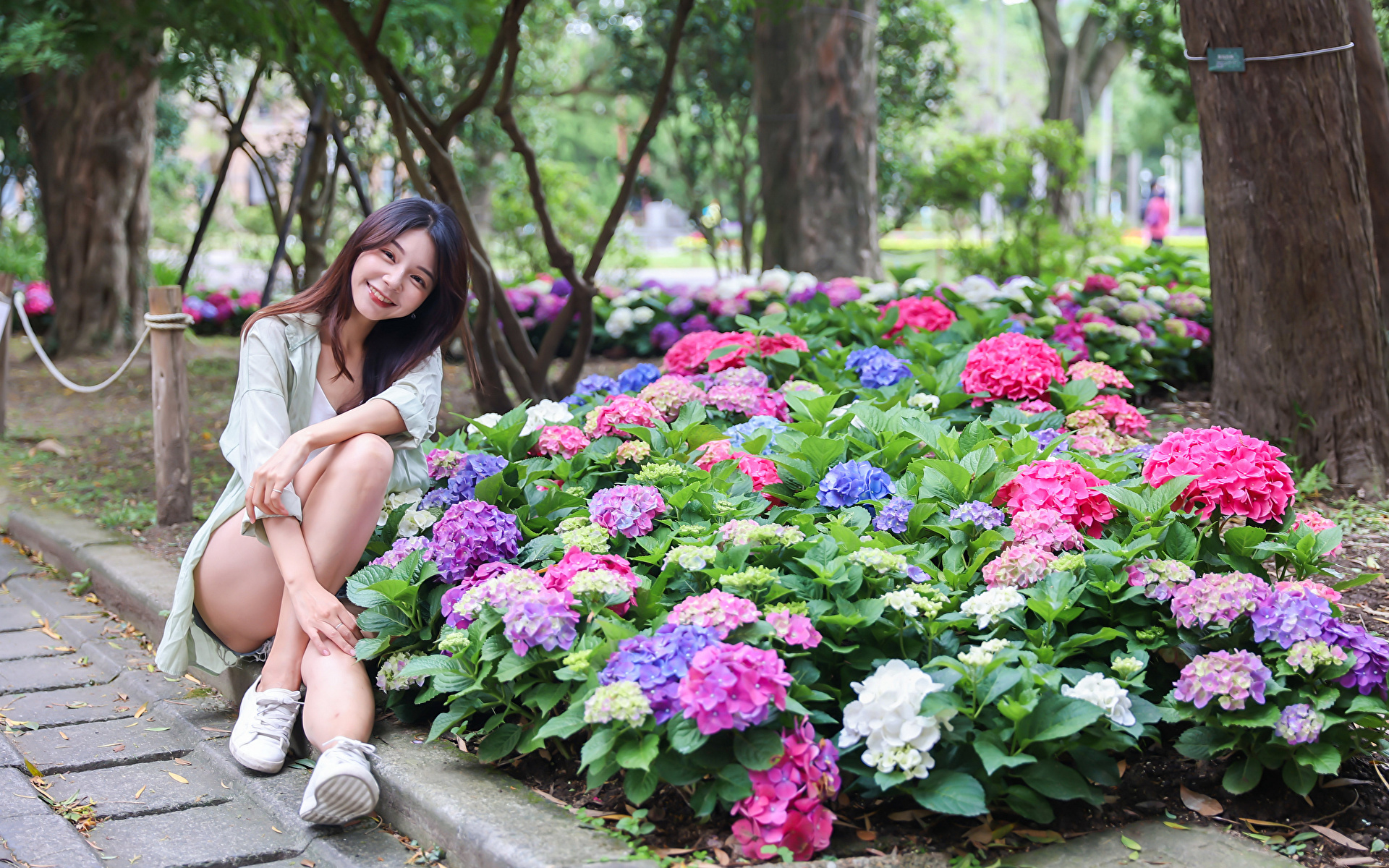 Азиаты Гортензия Сидит Ноги Шорты Улыбка Блузка Девушки фото 1920x1200