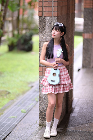 Азиаты Ноги Юбка Майка Брюнетка Гитара Девушки фото 300x450