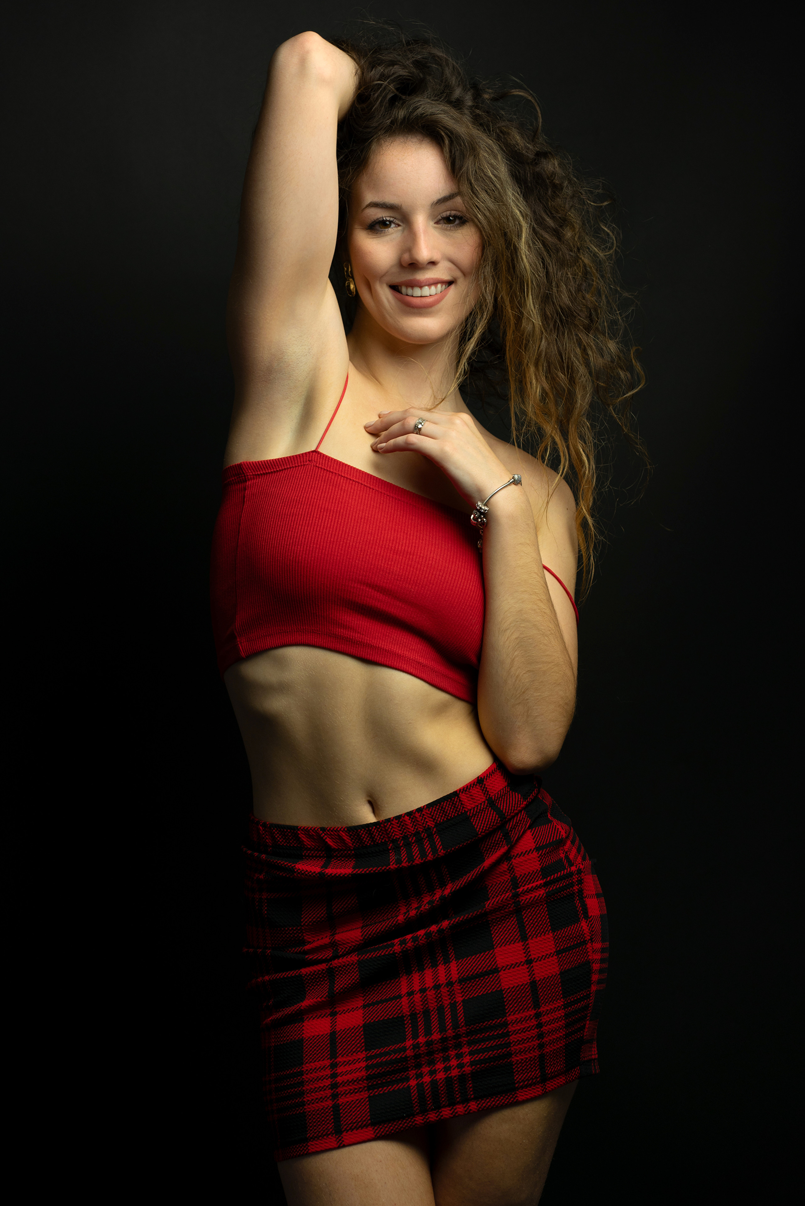 девушка, молодая женщина, молодые женщины, юбки, юбке, майки, майке, улыбается, рука, живота, позирует обои картинки скачать на рабочий стол планшета, мобильный телефон