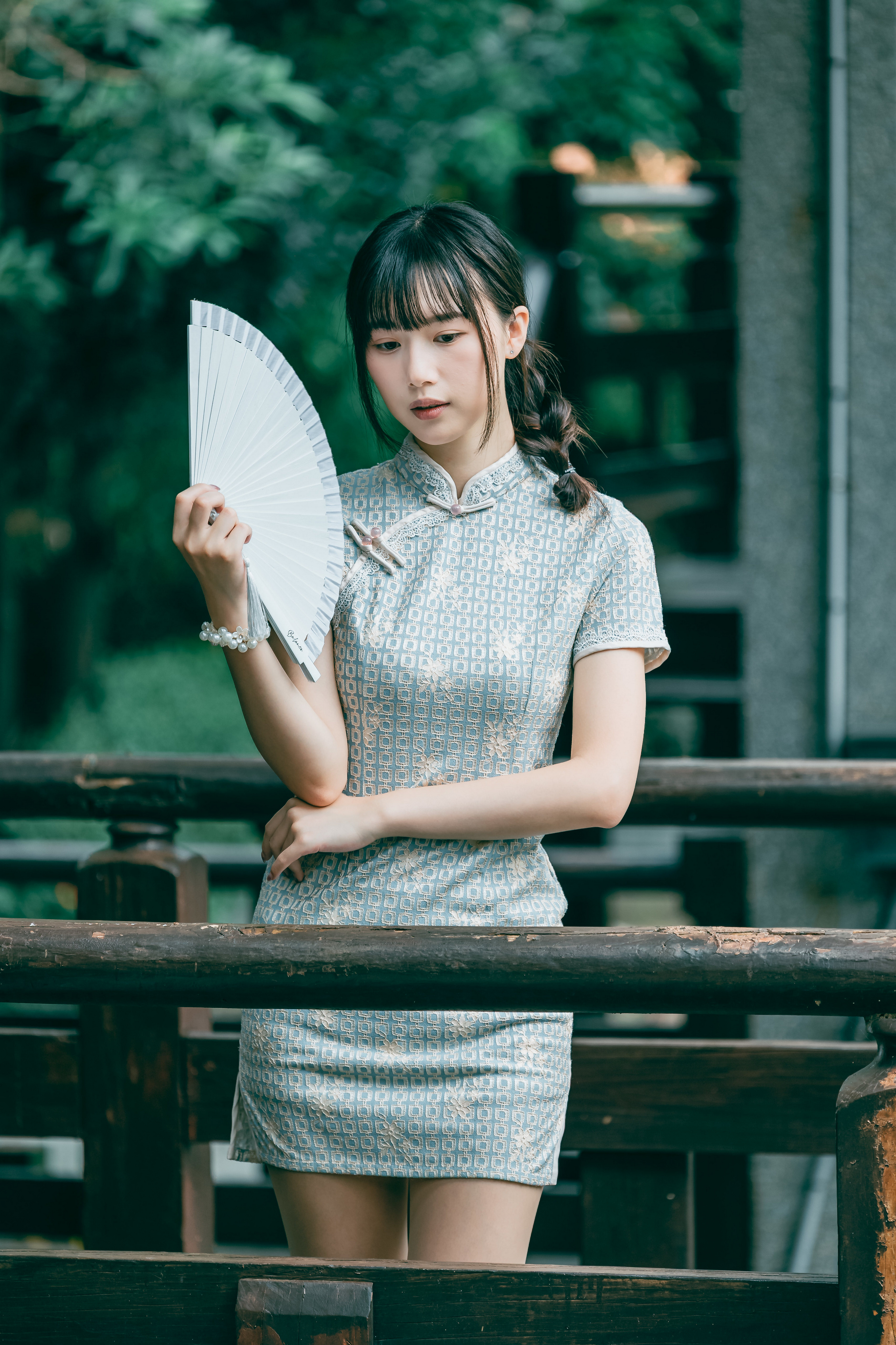 Азиаты Платье Веер Брюнетка Девушки фото 300x450
