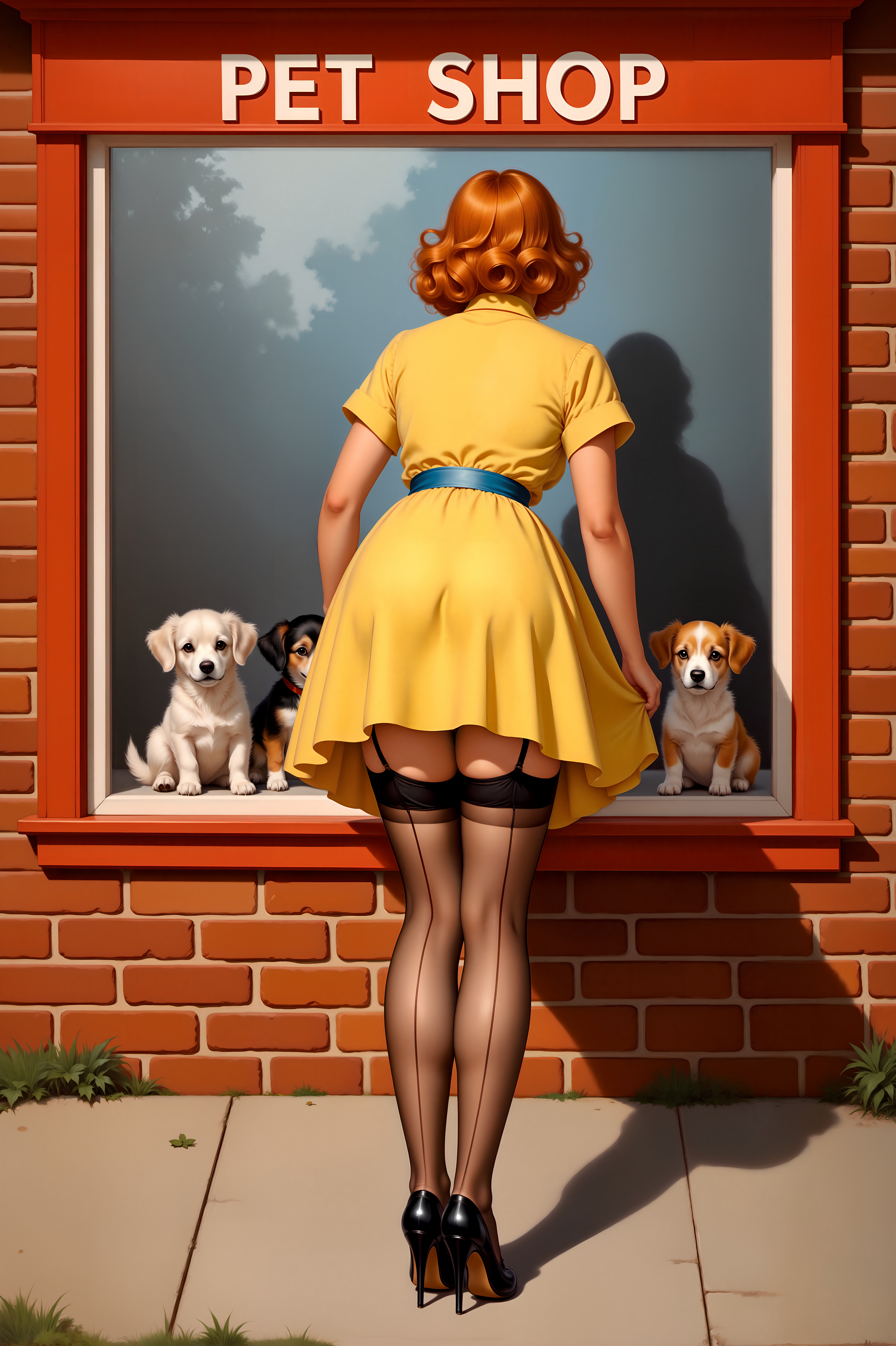 девушка, молодая женщина, молодые женщины, животное, чулках, туфель, туфлях, платья, ног, вид сзади, щенки, щенков, щенка обои картинки скачать на рабочий стол планшета, мобильный телефон