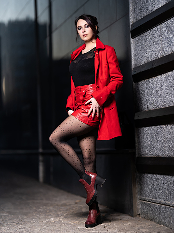 Giada Поза Ноги Колготки Туфли Юбка Блузка Пальто Брюнетка Стена Девушки фото 600x800