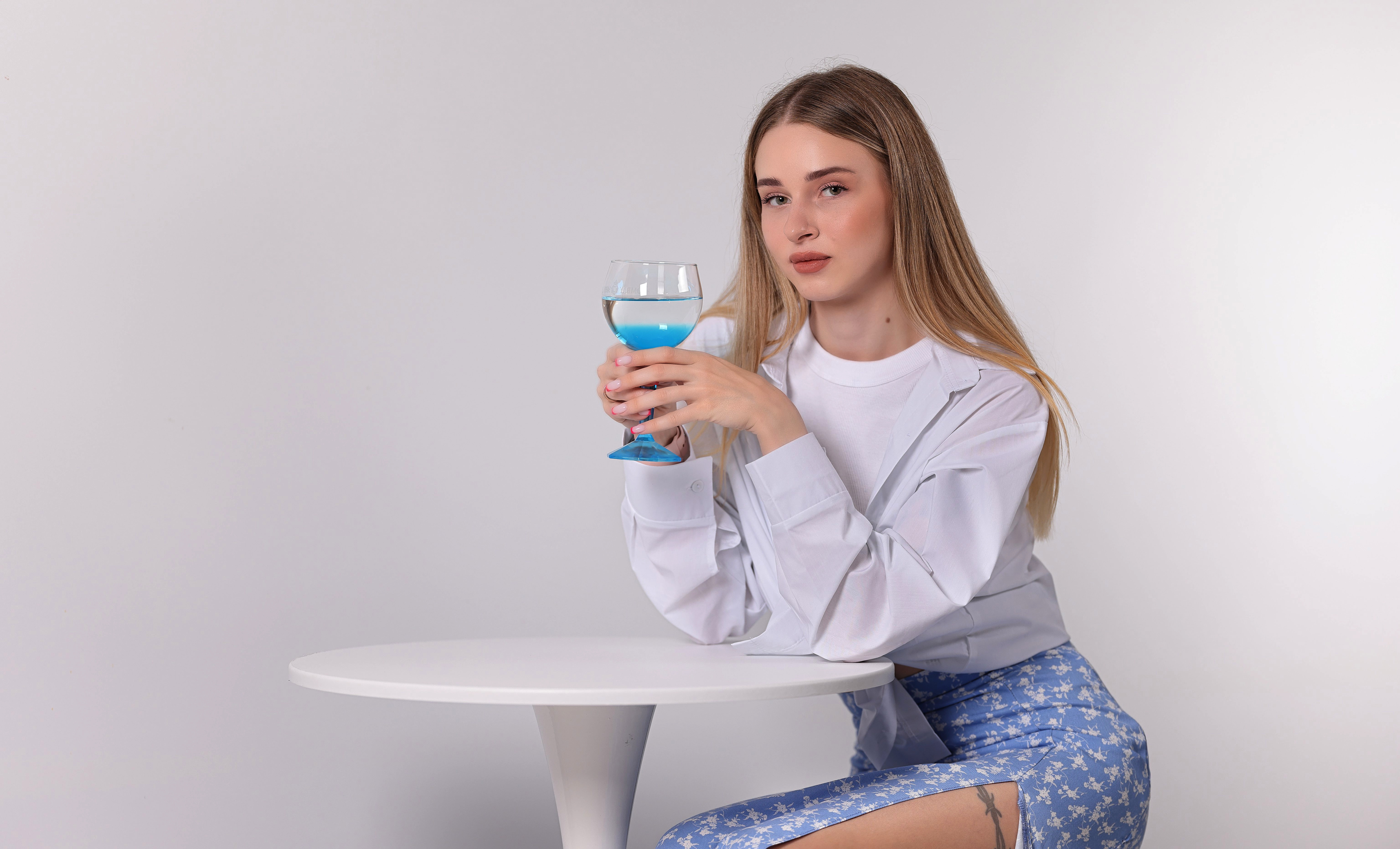 Напитки Стол Сидит Юбка Блузка Бокалы Девушки фото 6143x3725