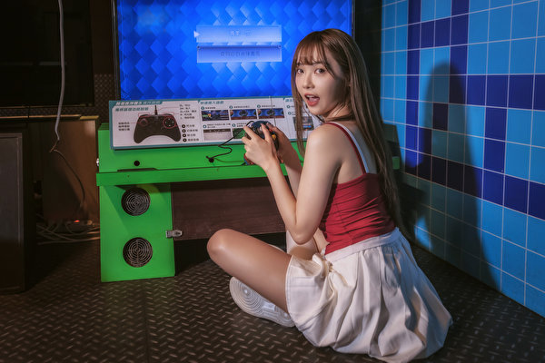 девушка, молодая женщина, молодые женщины, азиатки, азиатка, юбки, юбке, майки, майке, ног, сидящие, сидя, эмоции изумление, удивлен, удивлена, играют обои картинки скачать на рабочий стол ПК, планшета