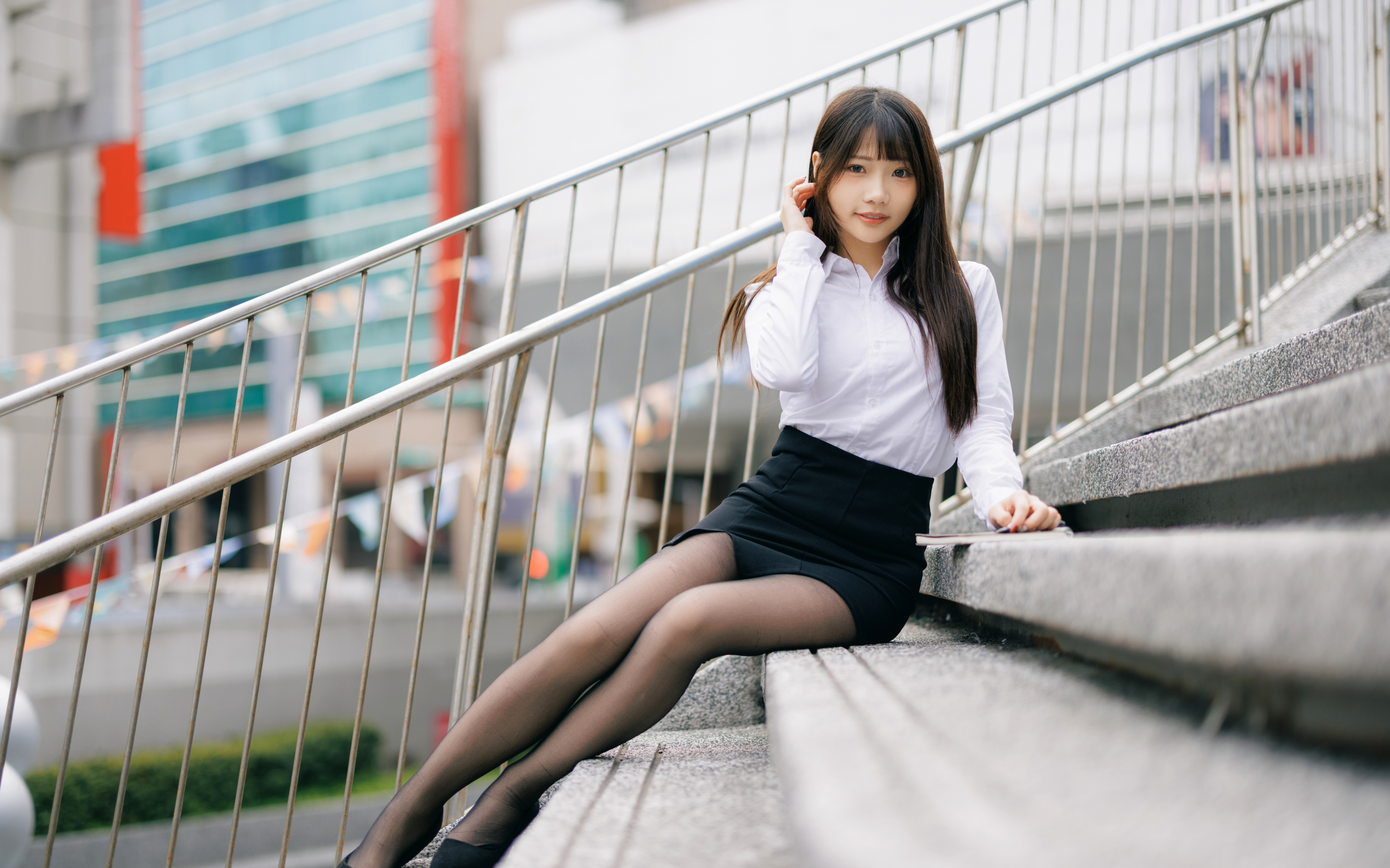девушка, молодая женщина, молодые женщины, азиатки, азиатка, колготок, колготках, юбки, юбке, туфель, туфлях, брюнетки, брюнеток, ног, лестницы, сидящие, сидя обои картинки скачать на рабочий стол ПК, планшета