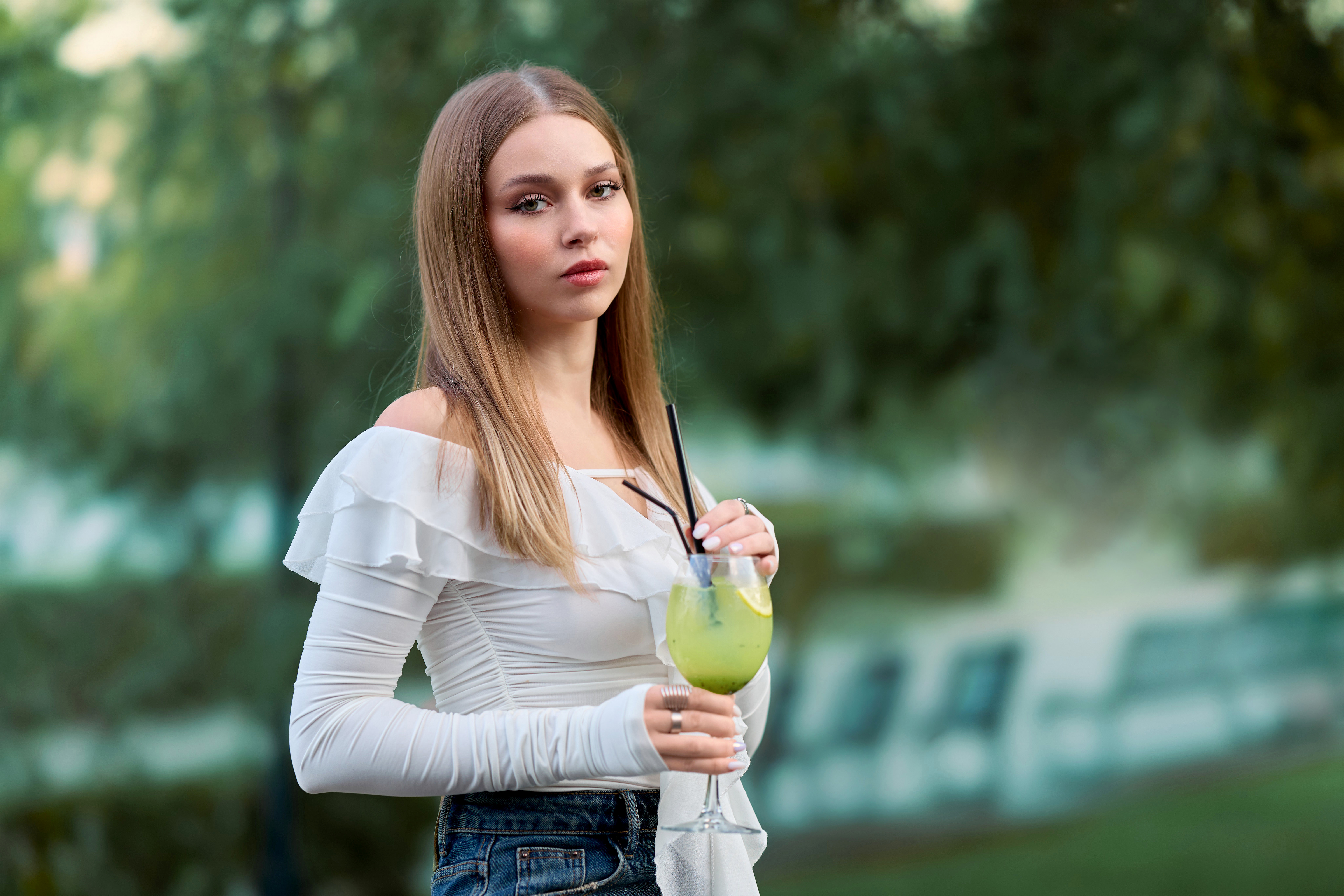 Коктейль Бокалы Блузка Волосы Взгляд Красивые Девушки Еда фото 6144x4098