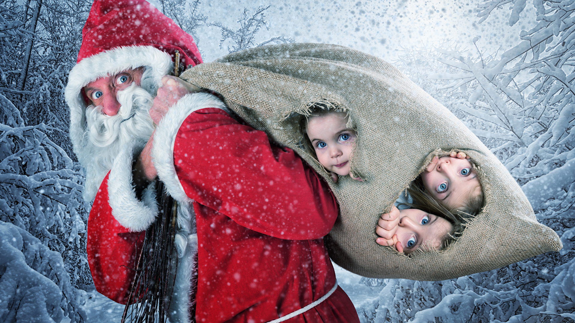 Новый год Дед Мороз Девочки Снег Униформа Трое 3 Дети Юмор фото 1920x1080