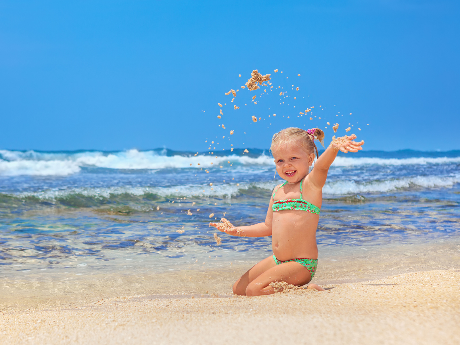 ребёнок, девочка, песка, песке, пляжа, пляже, пляжи, счастье, счастливые, радостный, счастливый, счастливая, радостная обои картинки скачать на рабочий стол ПК, планшета
