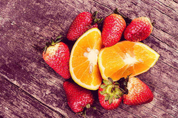 Фрукты Клубника Апельсин Еда фото 600x397