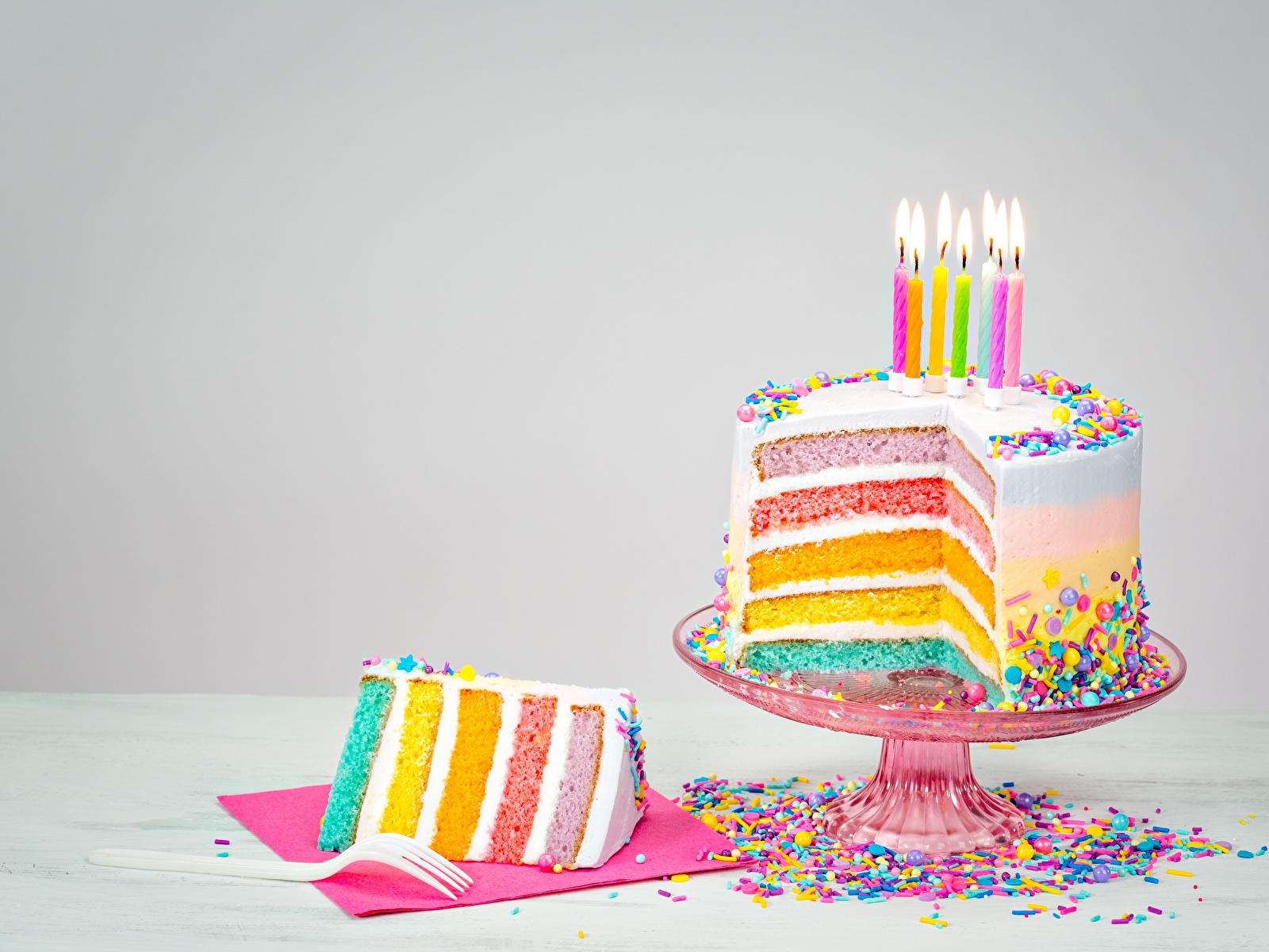 Торты Свечи Кусок Еда фото 1600x1200