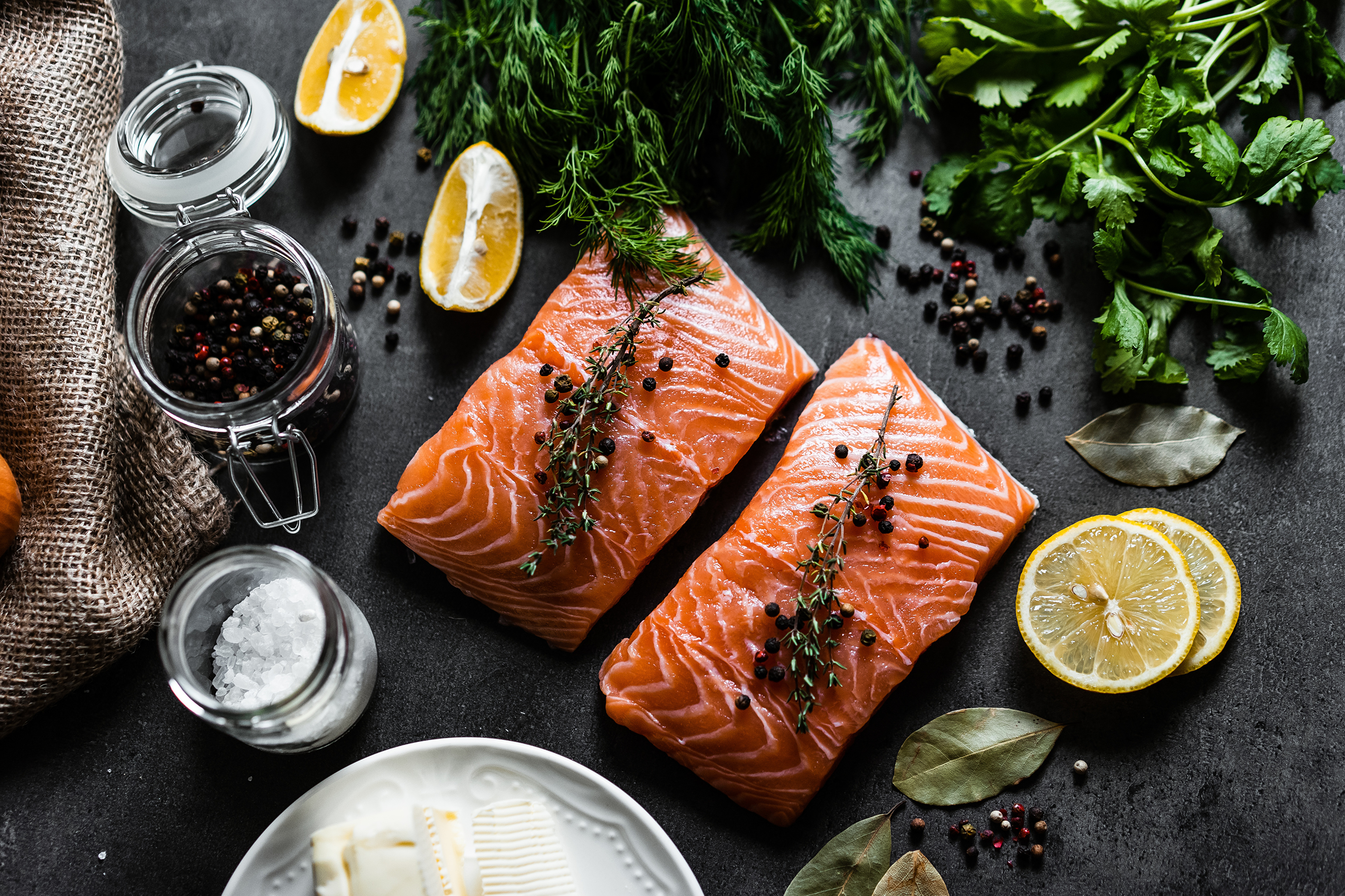 Рыба Лососи Лимоны Специи Перец чёрный Кусок Еда фото