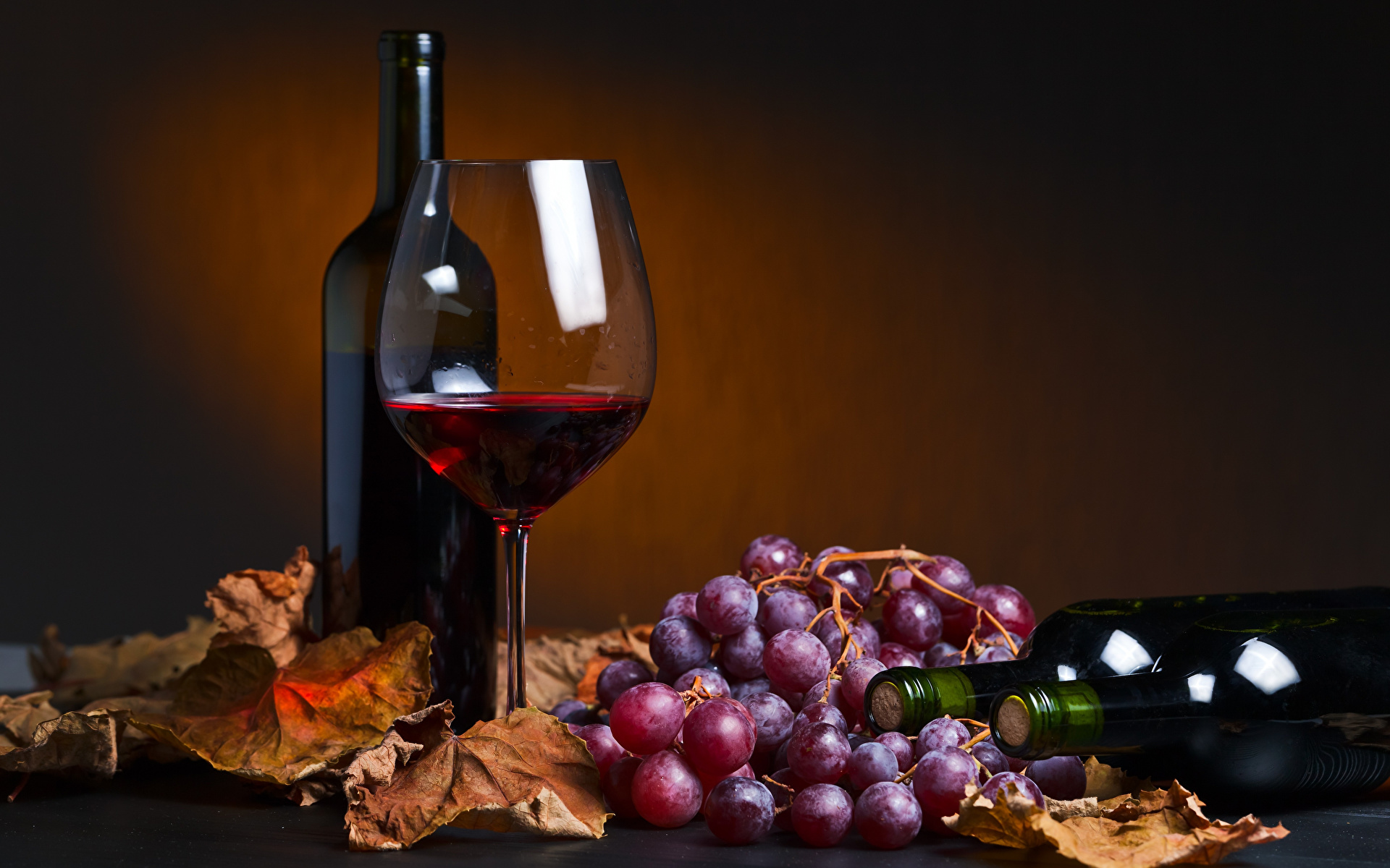 Пища, Продукты питания, бокал, Листва, лист, бутылки обои картинки скачать на рабочий стол ПК, планшета