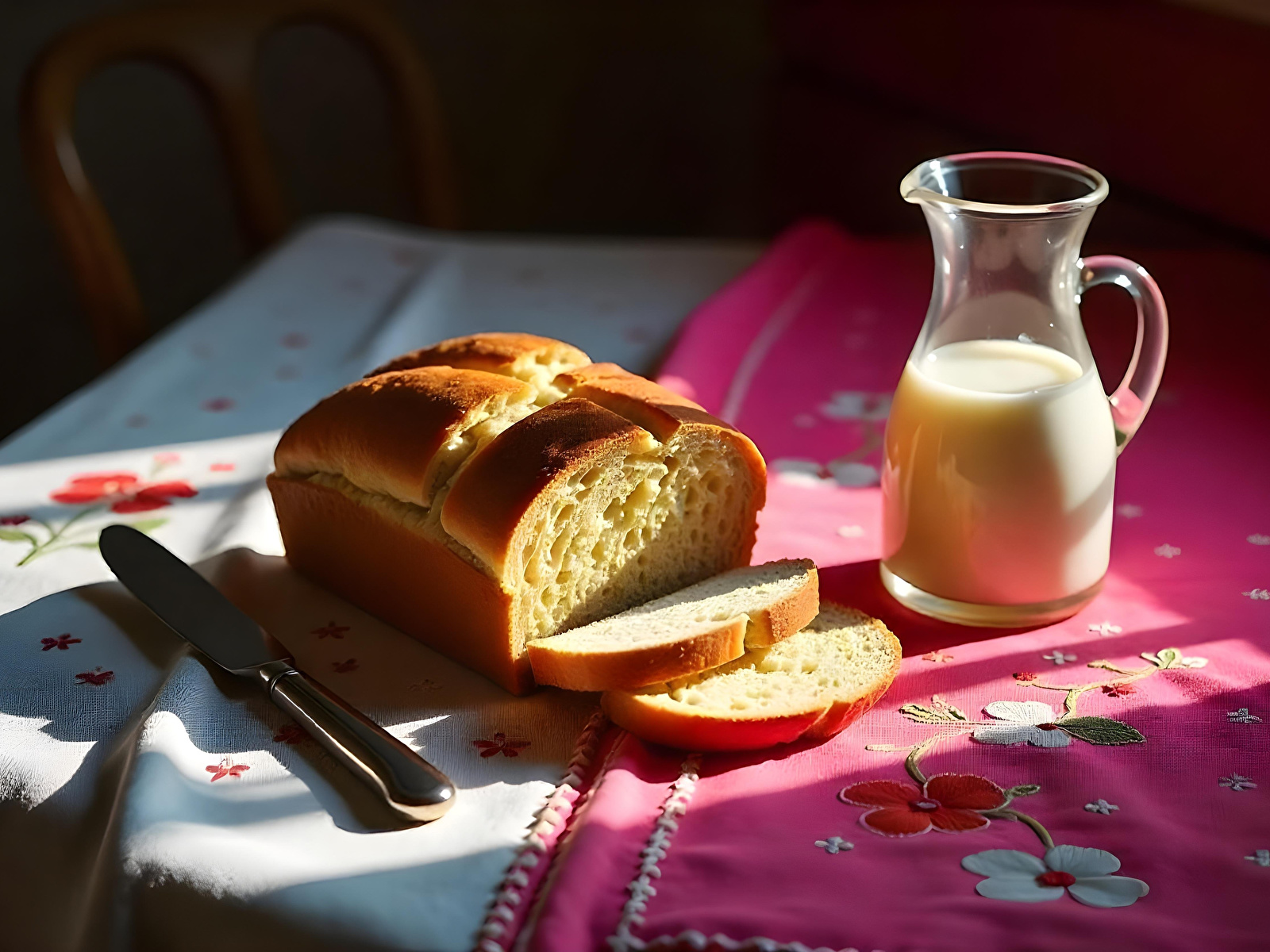 Хлеб Молоко Нож Скатерть Ai Еда фото 1600x1200