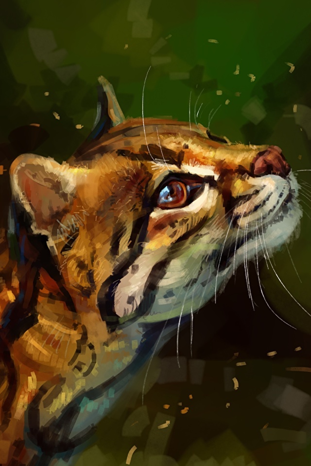 Рисованные Большие кошки Оцелот Голова Усы Вибриссы Животные фото 640x960