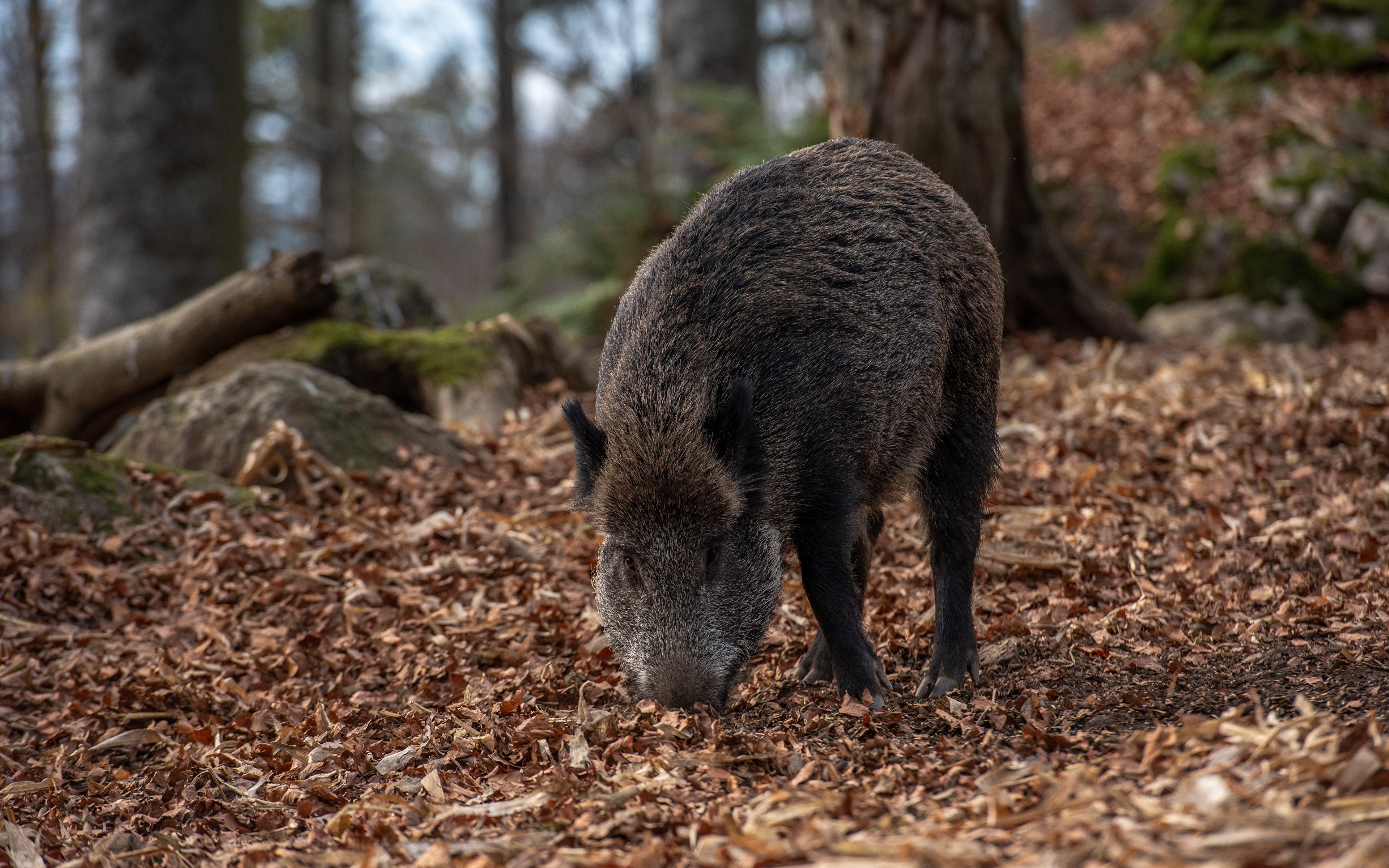 Кабан Осень Размытый фон Листья Животные фото 3840x2400