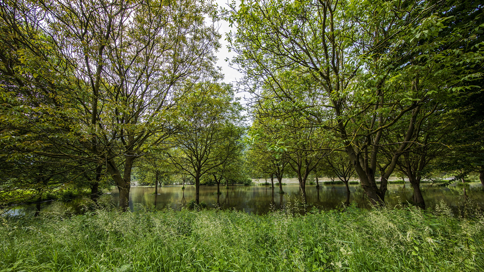 Германия Лето Парки Mosel Деревья Трава Природа фото 1920x1080
