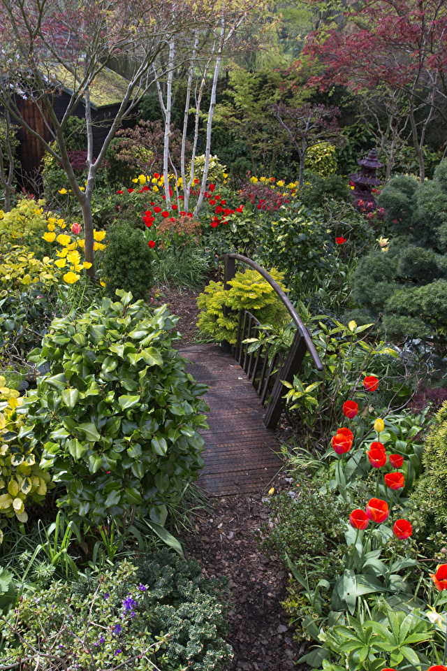 Англия Сады Тюльпаны Walsall Garden Кусты Природа фото 640x960