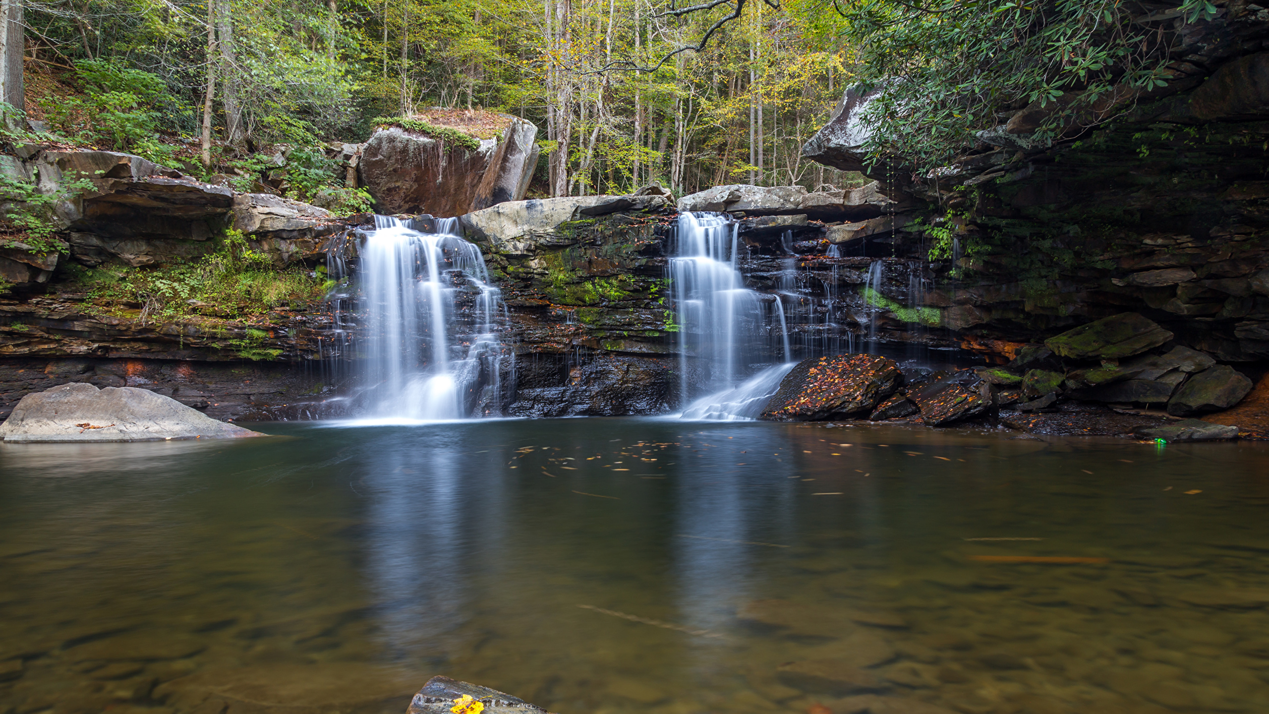 Осень Камни Водопады Скала Природа фото 2560x1440