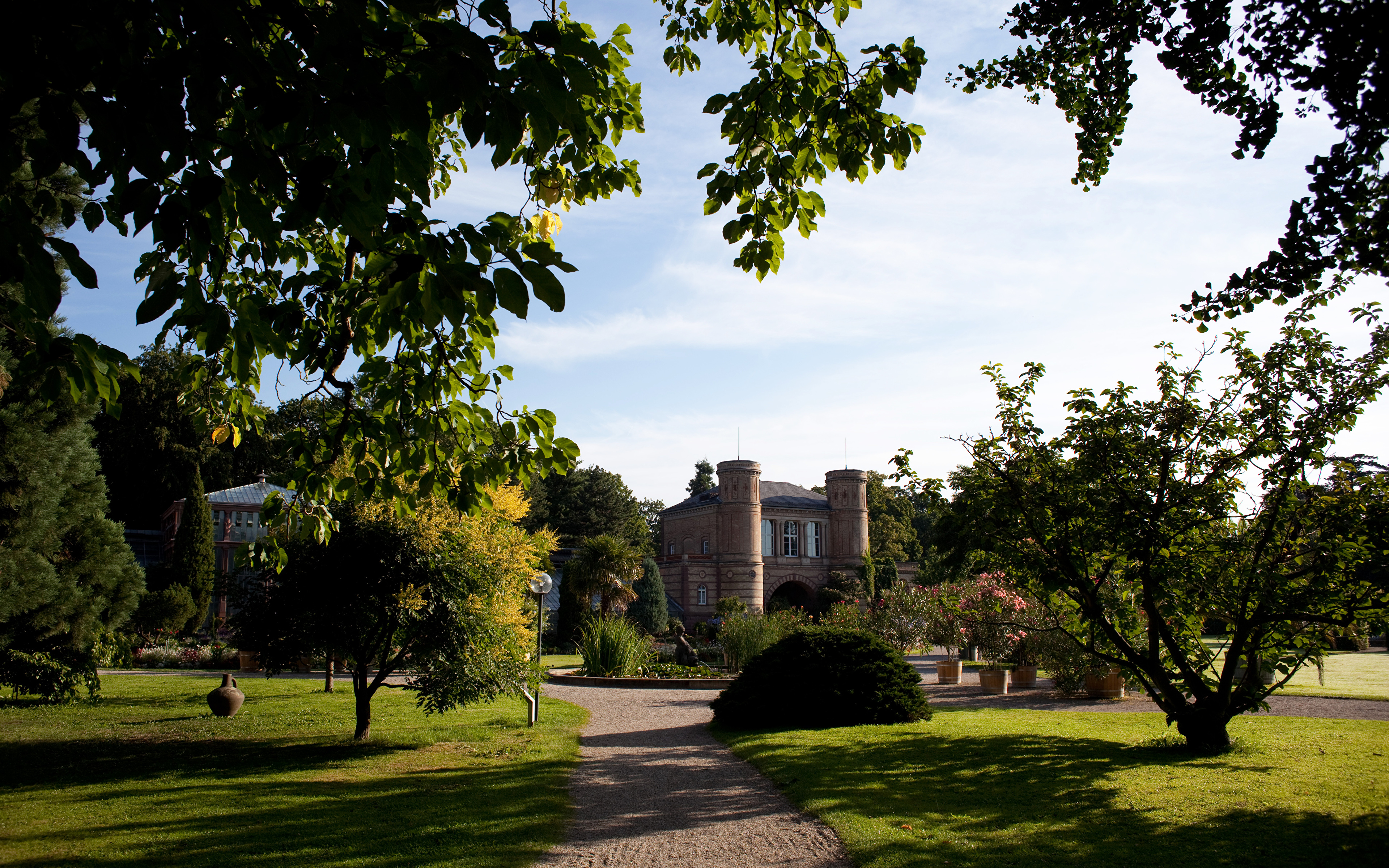 Германия Парки Дома Karlsruhe Botanic Garden Газон Деревья Кусты Природа фото 3840x2400