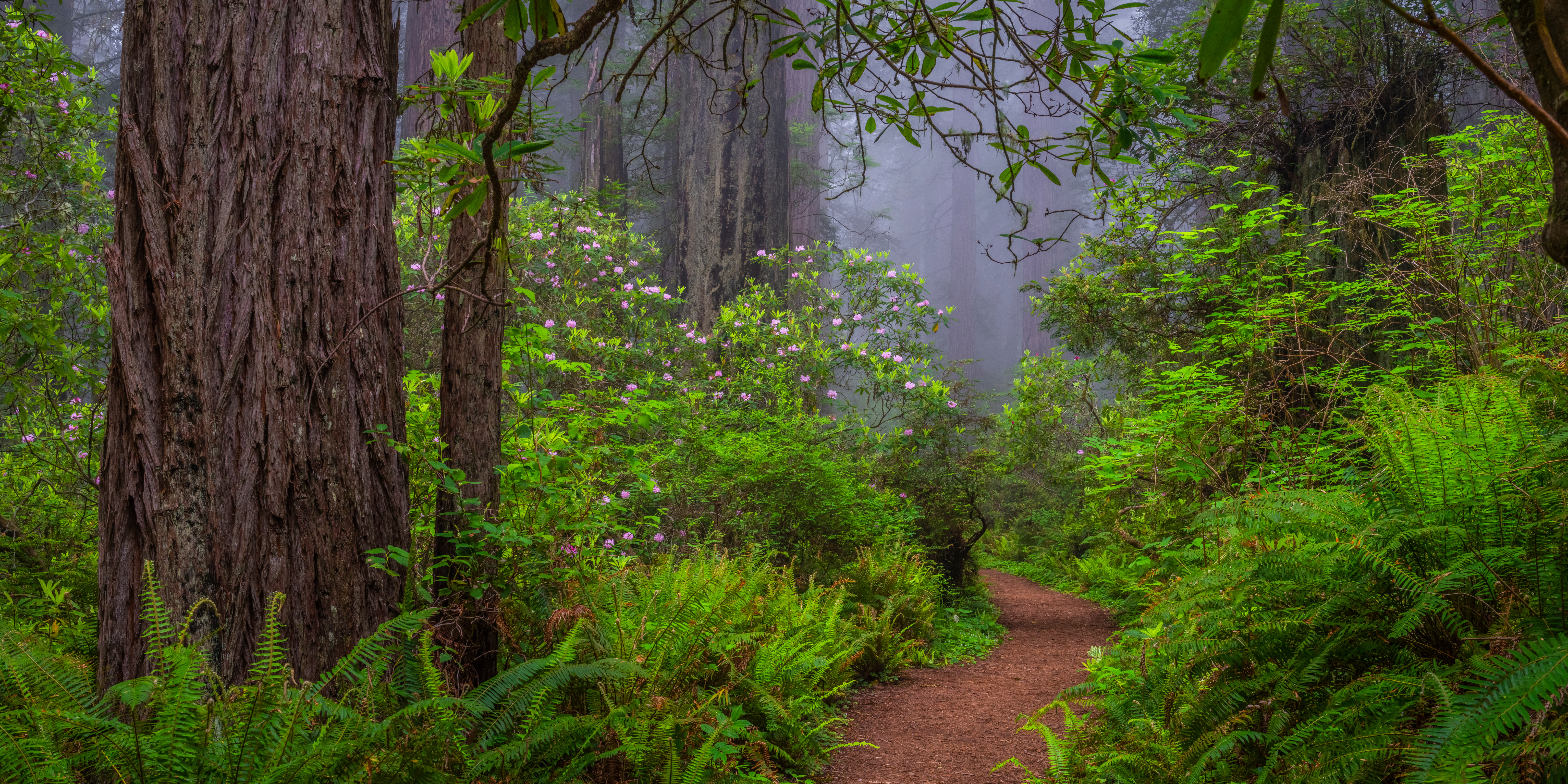 лес, парк, штаты, америка, дерево, деревьев, дерева, тумане, тумана, тропинка, тропы, калифорнии обои картинки скачать на рабочий стол ПК, планшета