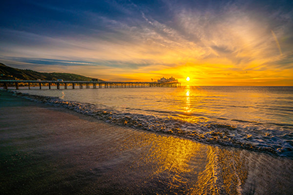 рассвет и закат, штаты, америка, Пирсы, Пристань, пляжа, пляже, пляжи, калифорнии обои картинки скачать на рабочий стол ПК, планшета