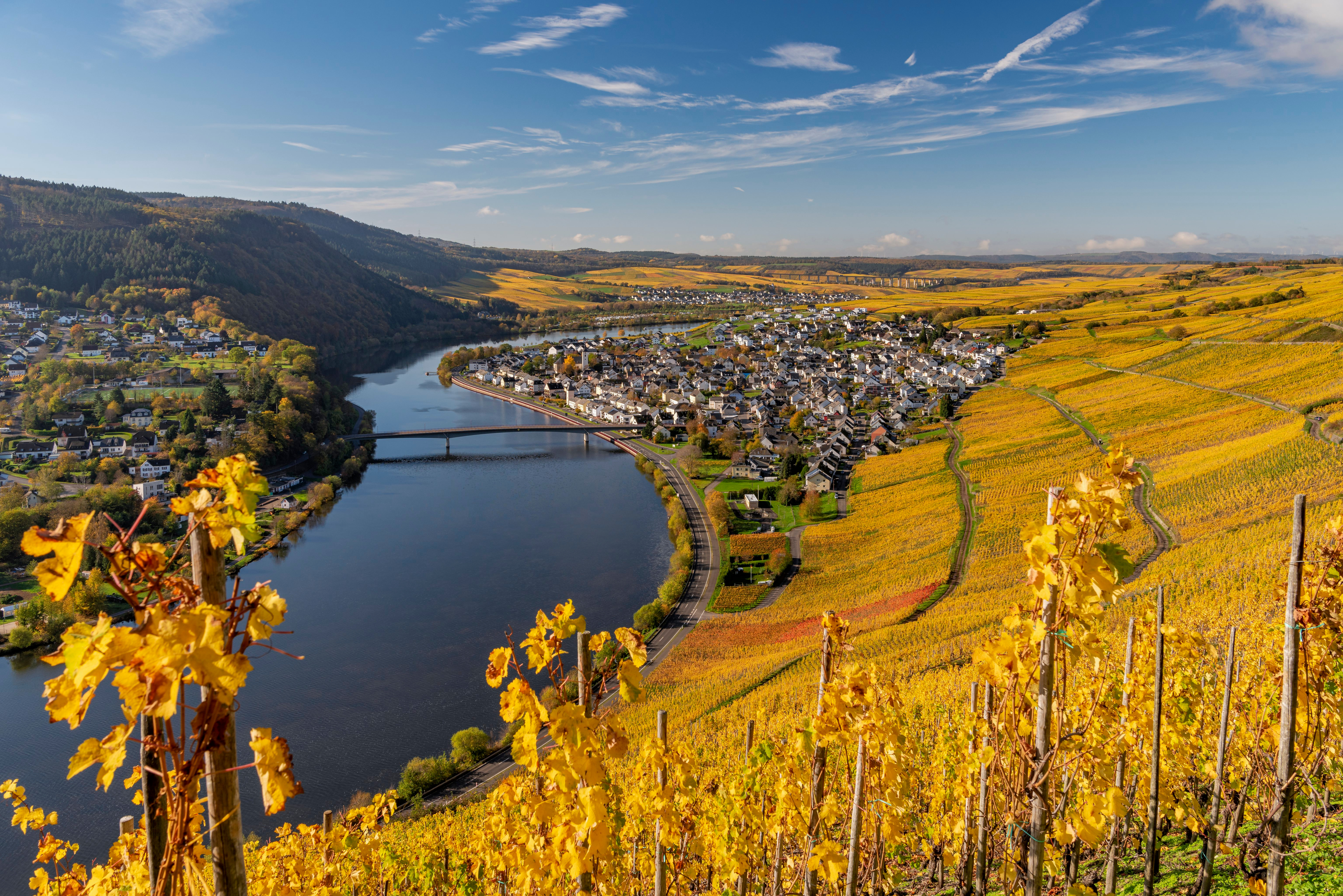 Германия Осень Реки Виноградник Пейзаж Rheinland-Pfalz Холмы Природа фото
