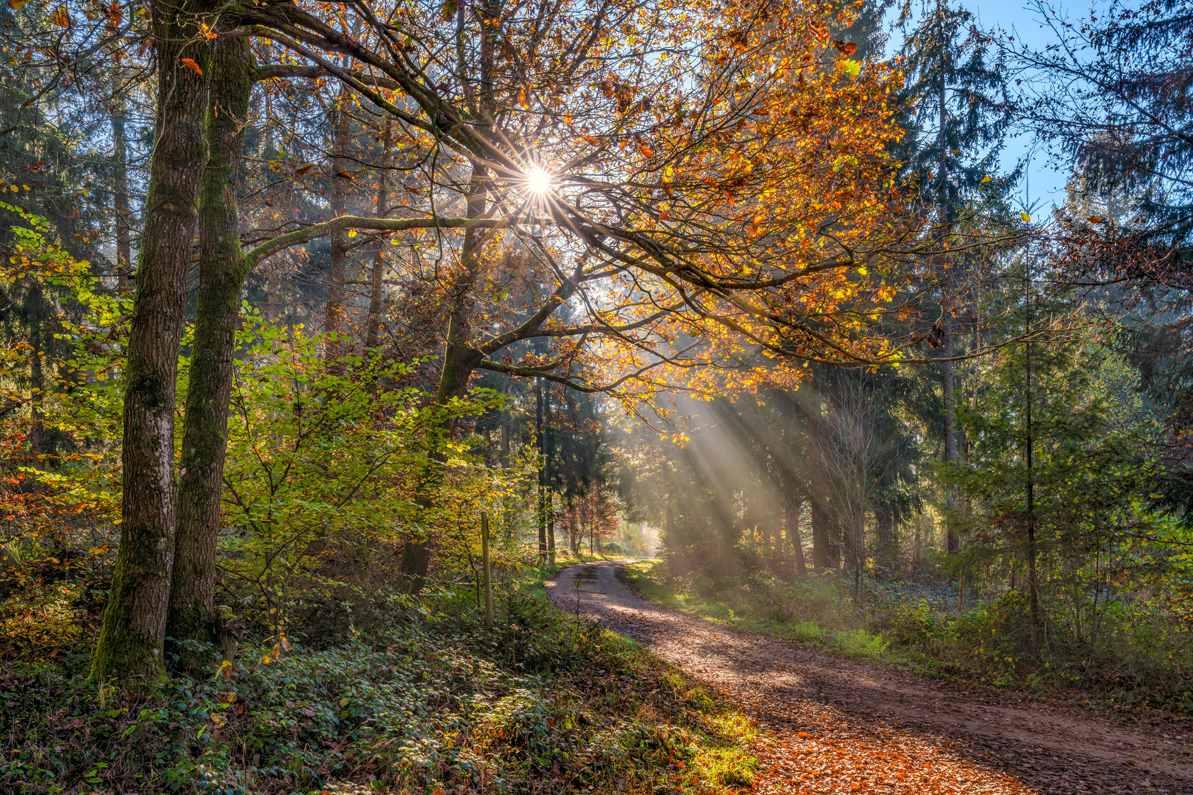 Германия Осень Леса Дороги Rheinland-Pfalz Ветки Солнце Природа фото 600x400