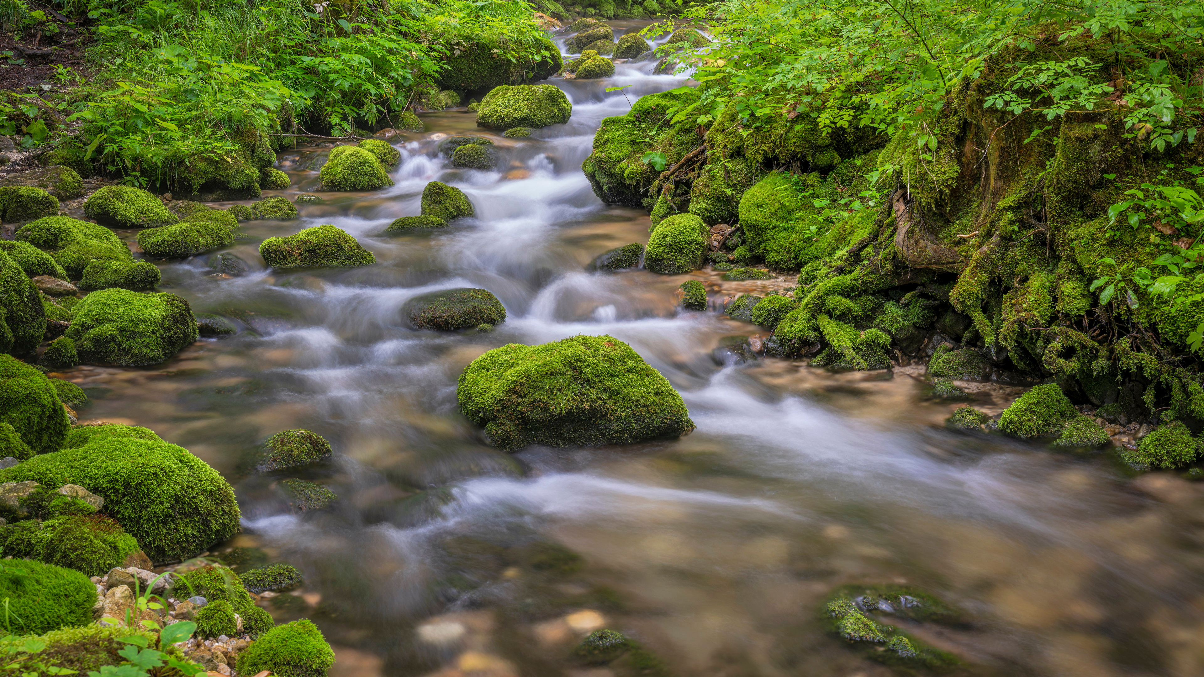 Австрия Леса Реки Камни Styria Мох Природа фото 3840x2160