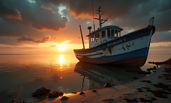 Море Побережье Рассветы и закаты Лодки Ai Природа фото 600x360