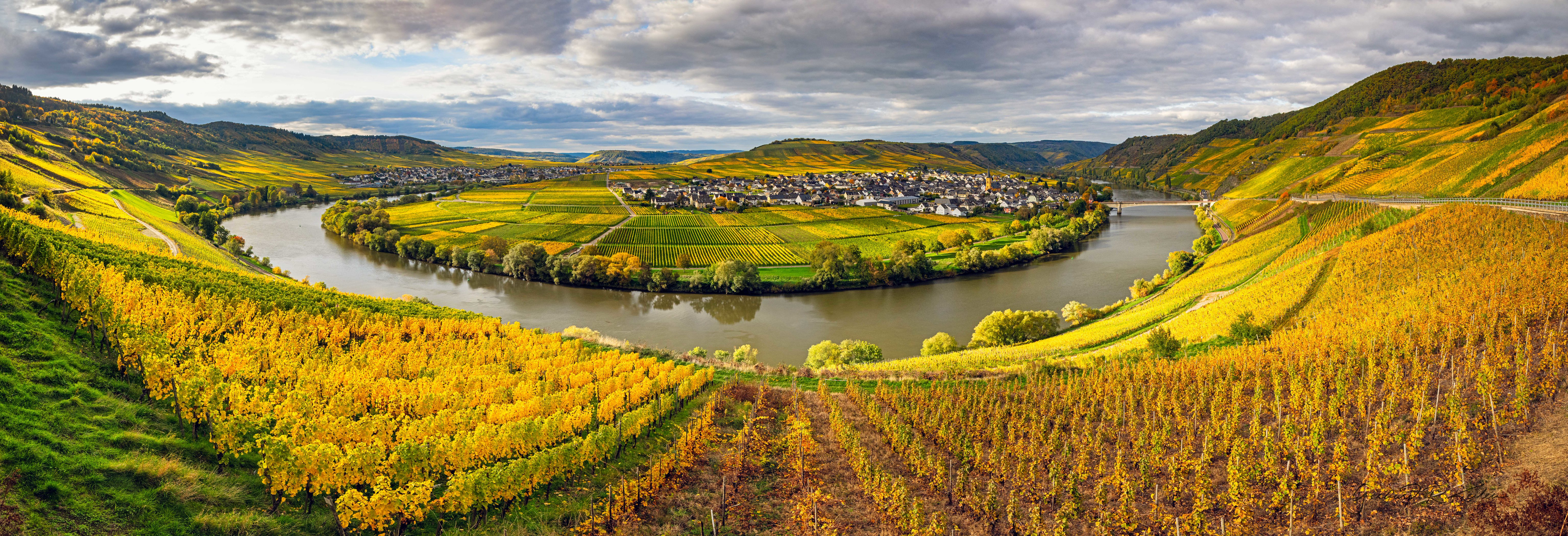 Германия Осень Реки Виноградник Панорама Mosel Природа фото