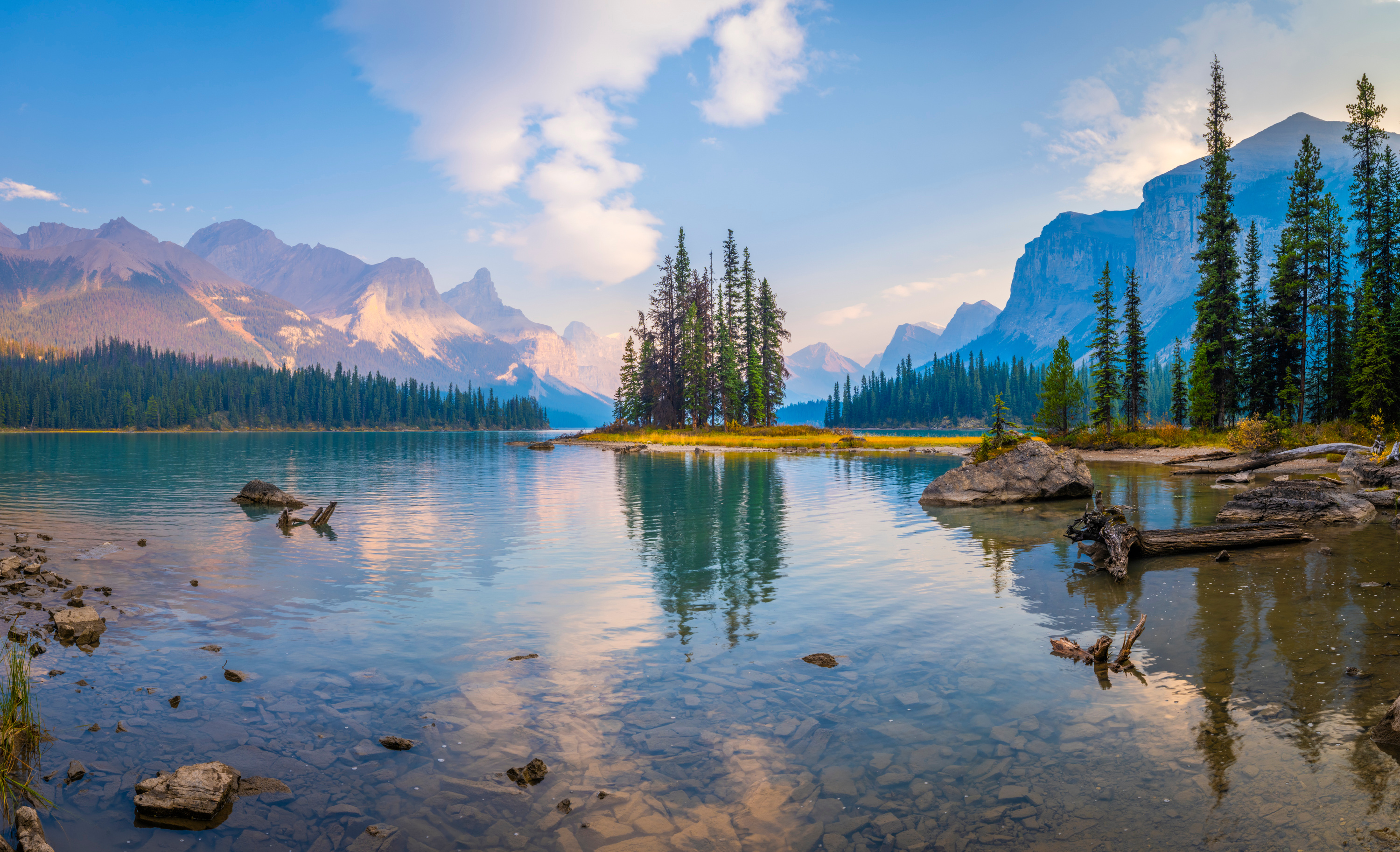 Канада Парки Пейзаж Озеро Горы Джаспер парк Природа фото 3000x1826
