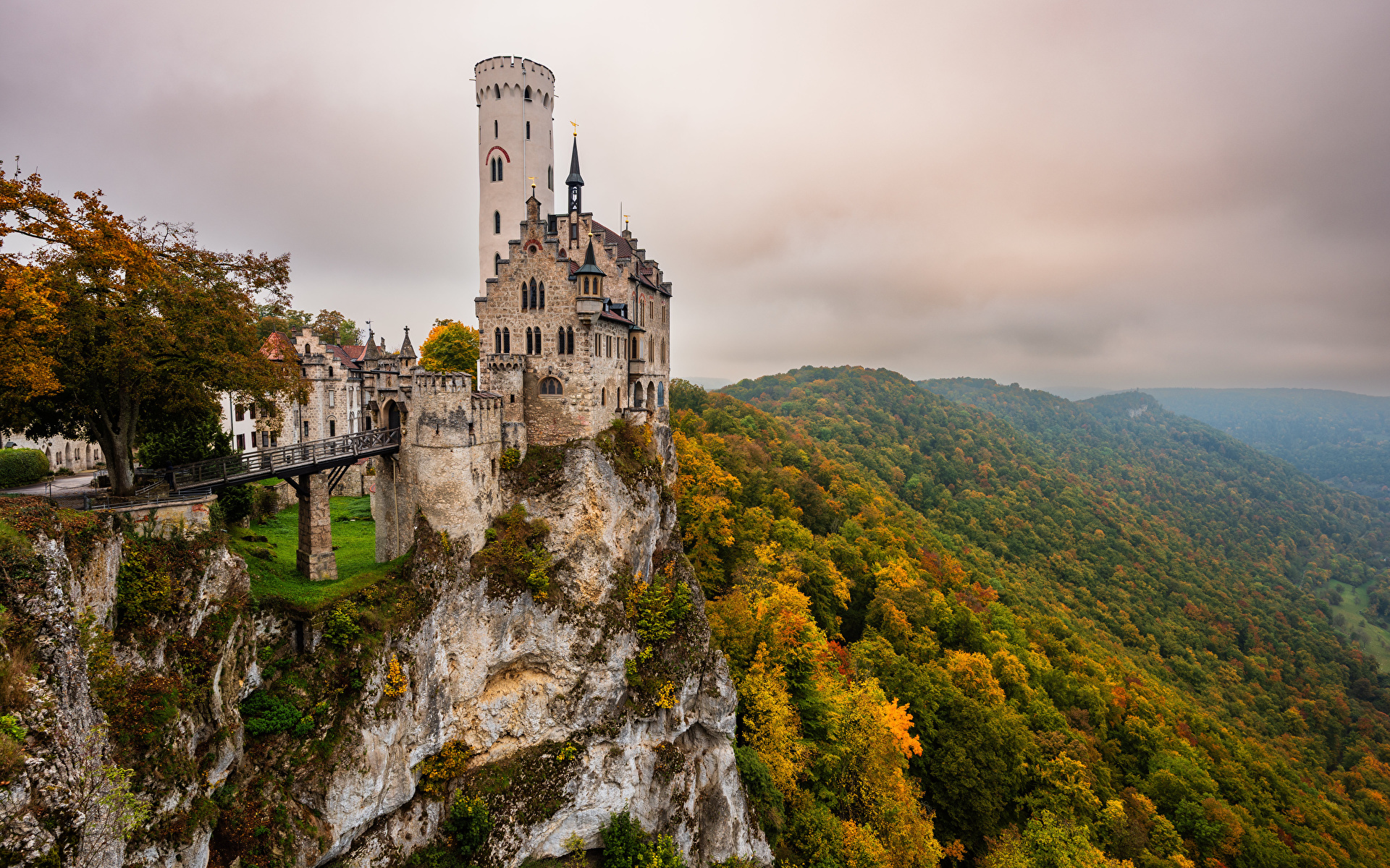 Германия Горы Замки Lichtenstein Castle Скала Природа фото 1920x1200