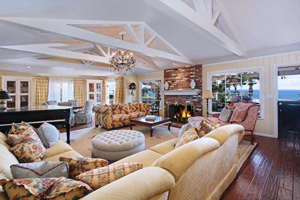 диване, люстры, камина, камины, дизайна, гостевая обои картинки скачать на рабочий стол ПК, планшета