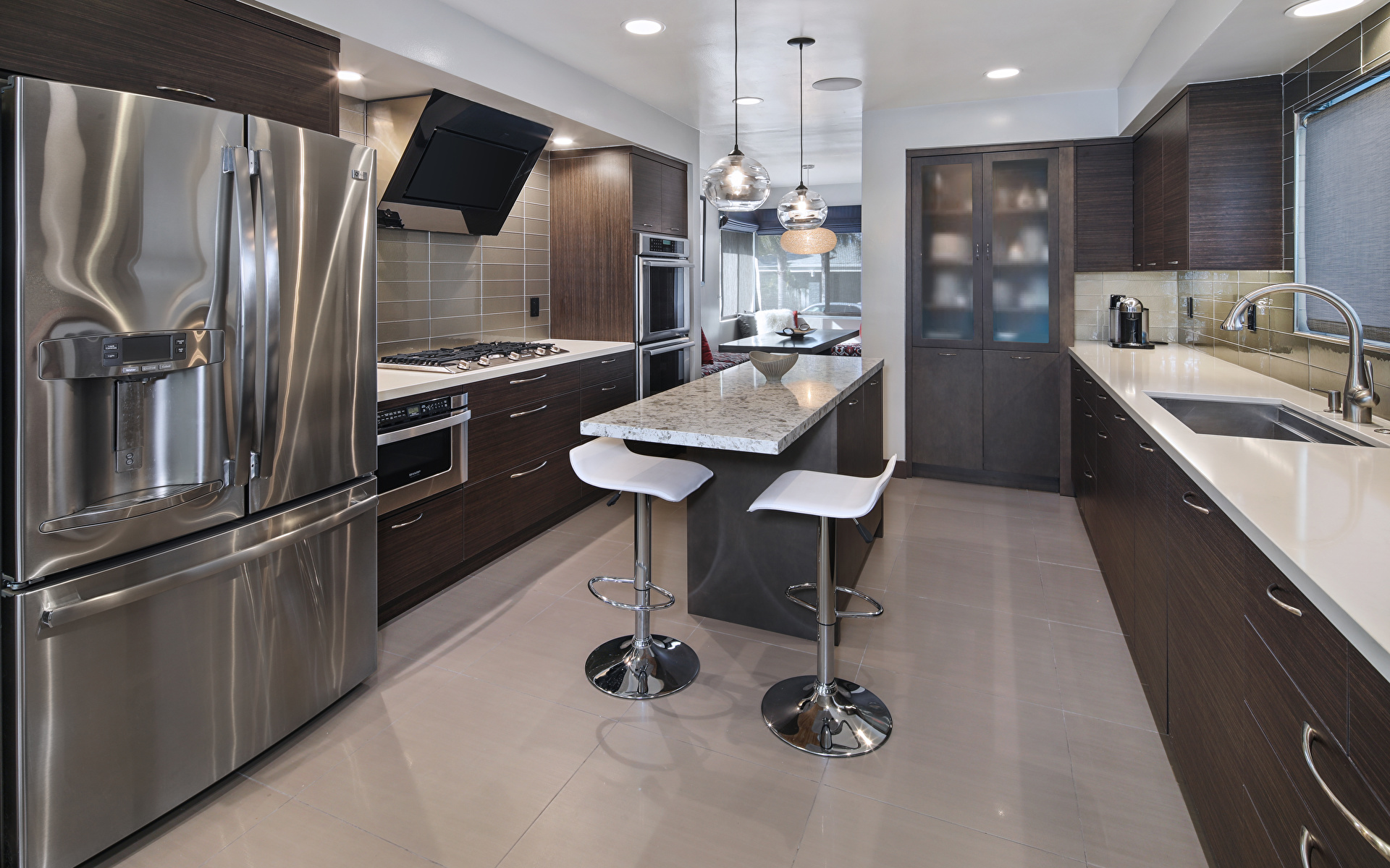 Интерьер Дизайн Кухня Стол Стулья фото 1920x1200