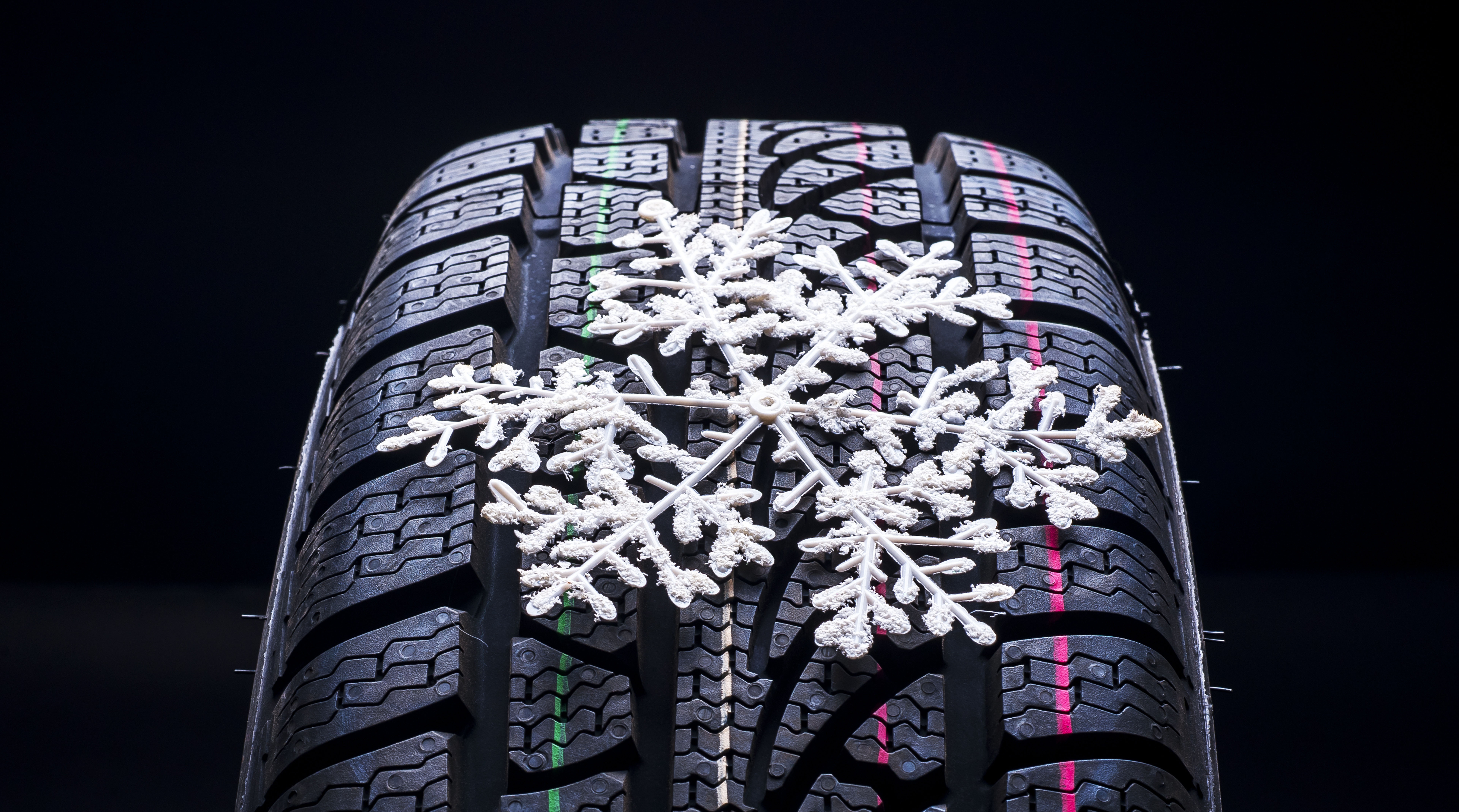 Крупным планом Снежинки Автомобильная шина Черный фон фото
