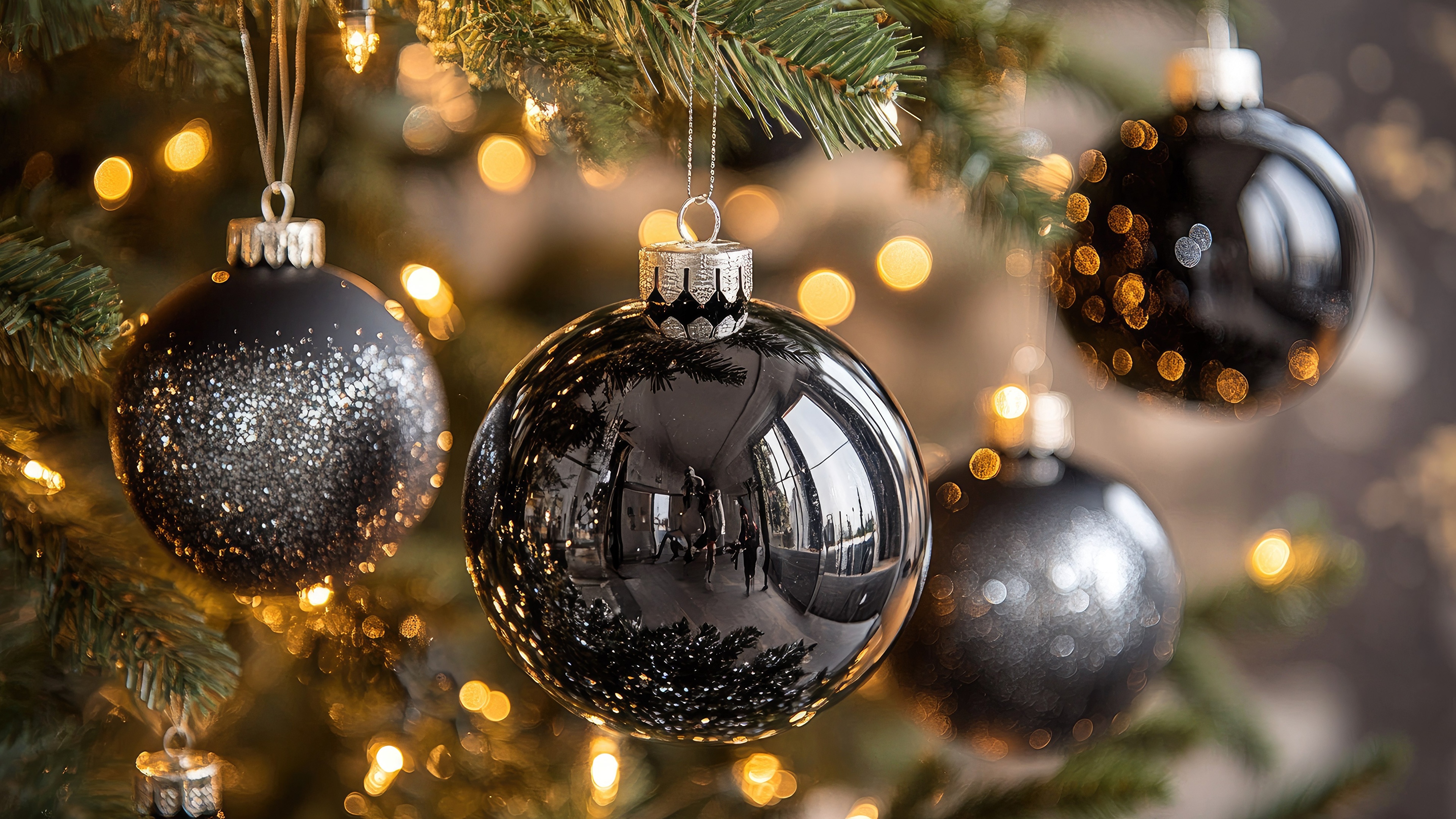 Новый год Ветки Шарики фото 3840x2160