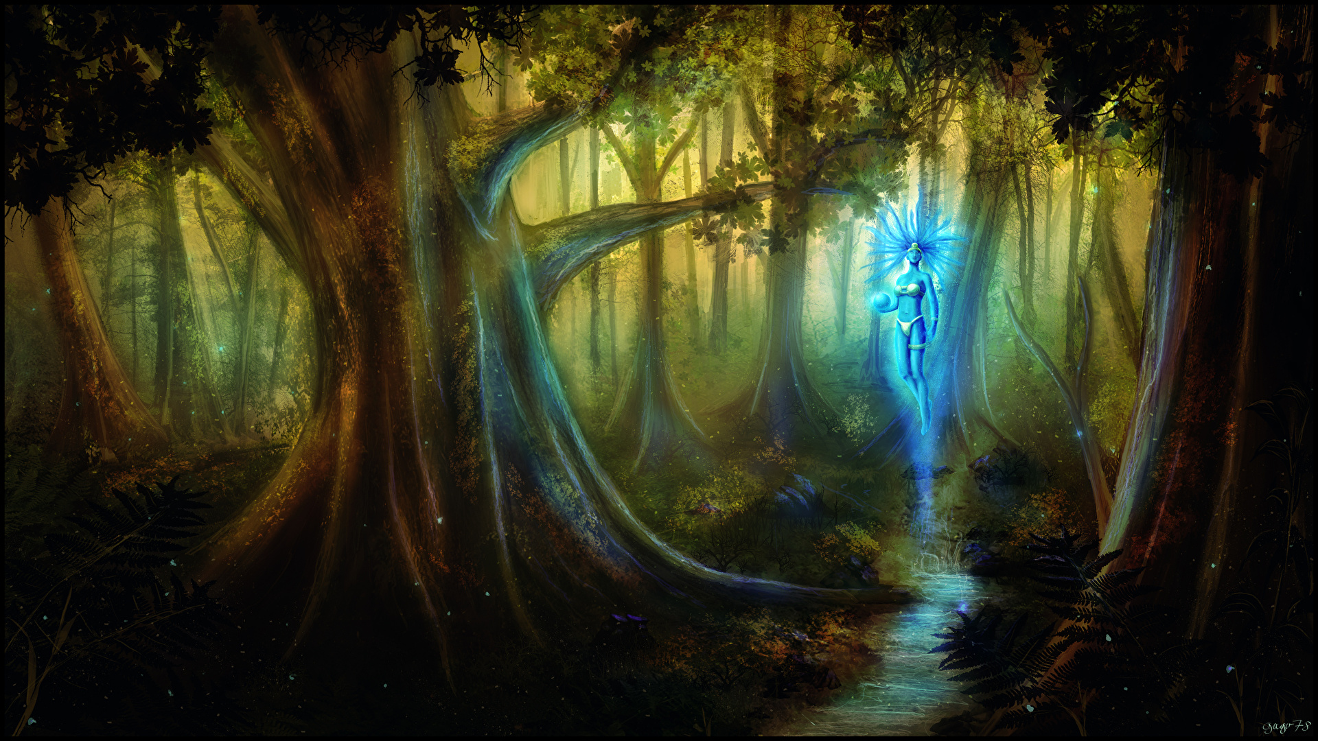 Магия Леса Сверхъестественные существа Деревья Фэнтези фото 1920x1080