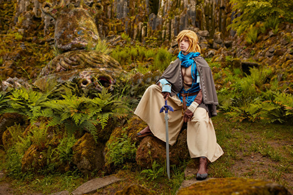 Михаил Давыдов фотограф The Legend of Zelda Камни Link Косплей Мох Сидит Мечи Фэнтези Игры фото 600x400